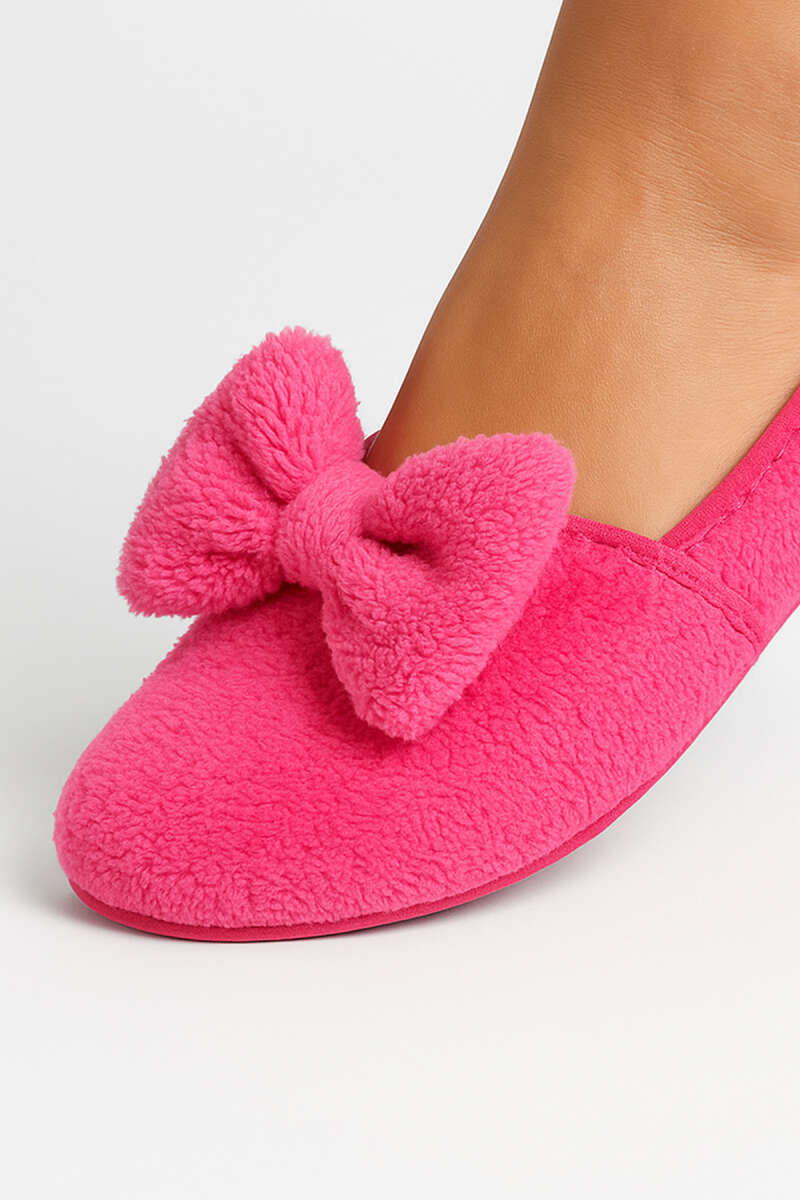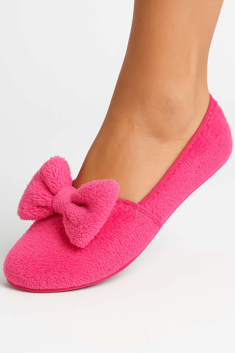 Kadın Kurdeleli Peluş Patik Fuşya
