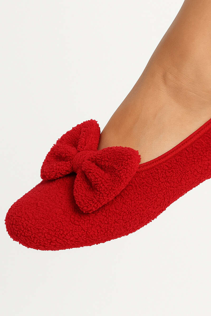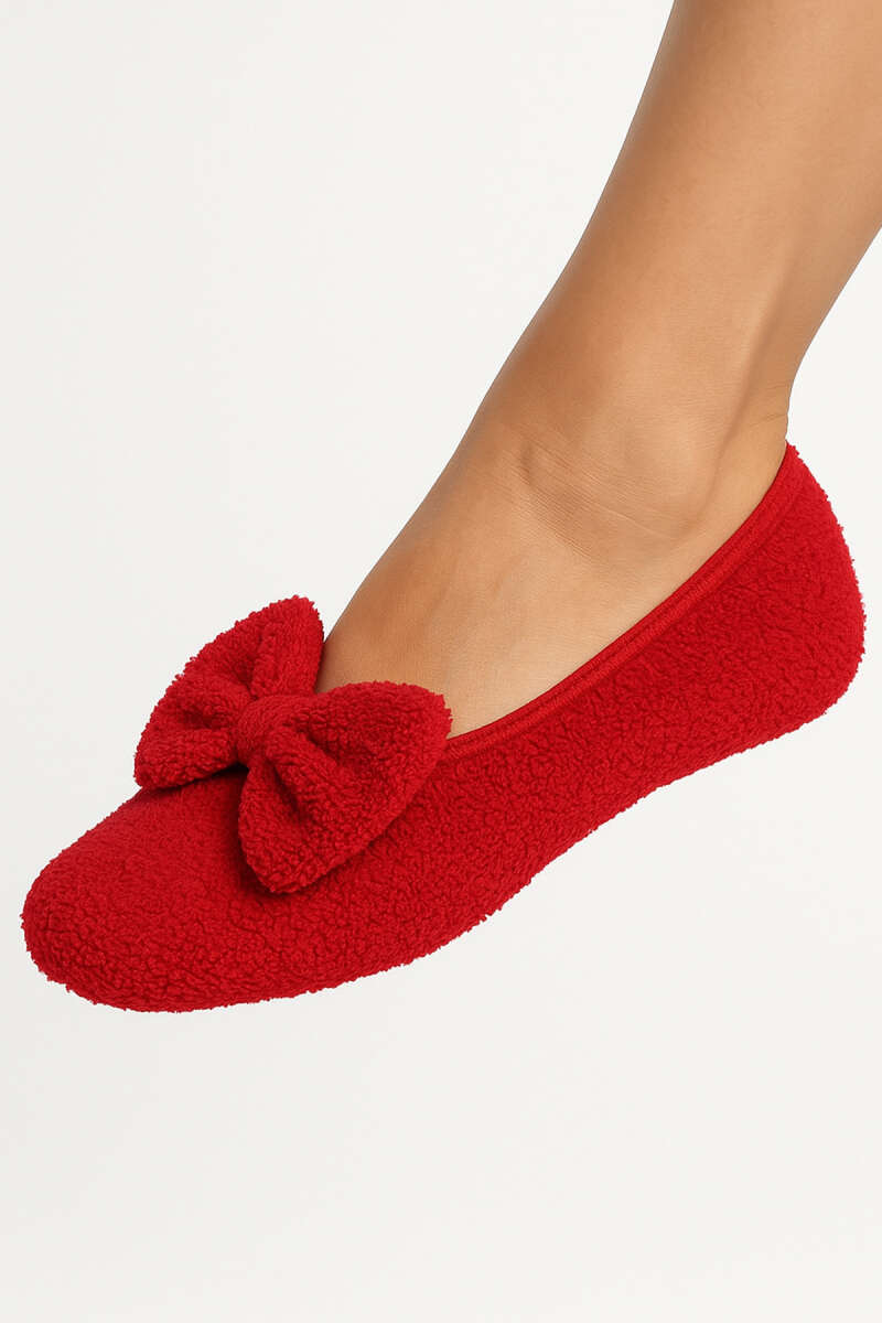 Kadın Kurdeleli Peluş Patik Kırmızı