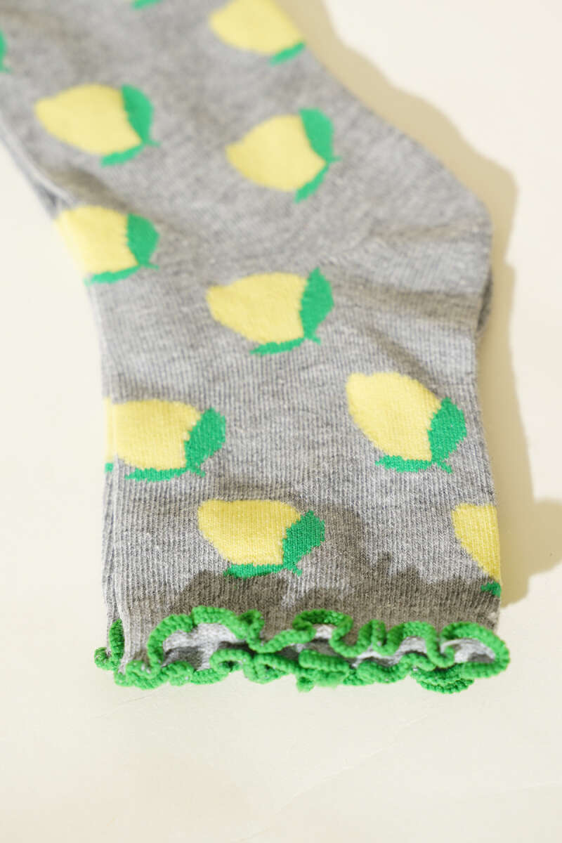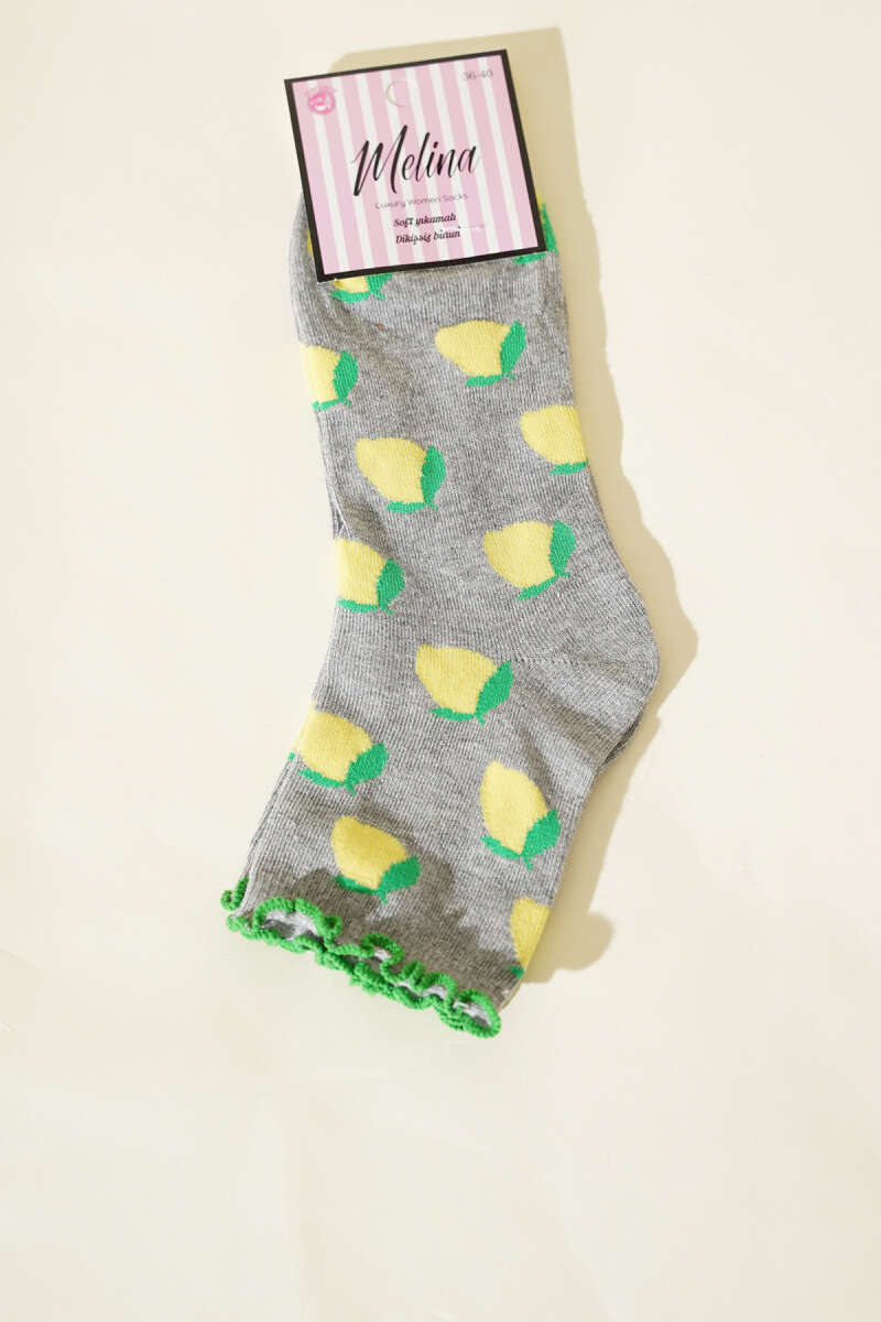 Kadın Meyve Figürlü Soket Çorap Gri