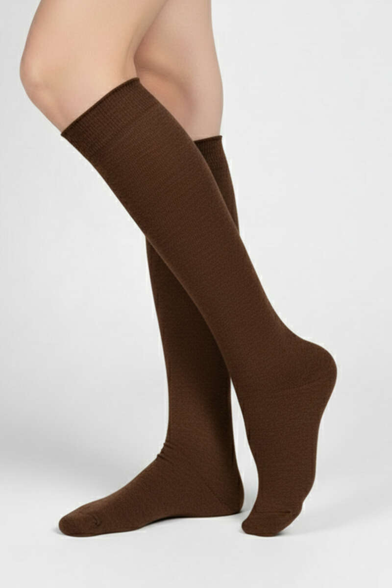 Kadın Penye Dizaltı Çorap Kahve