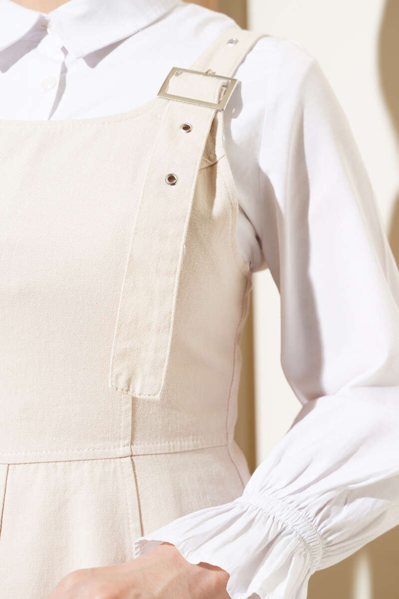 Pelerin Detaylı Düğmeli Triko Elbise Bej