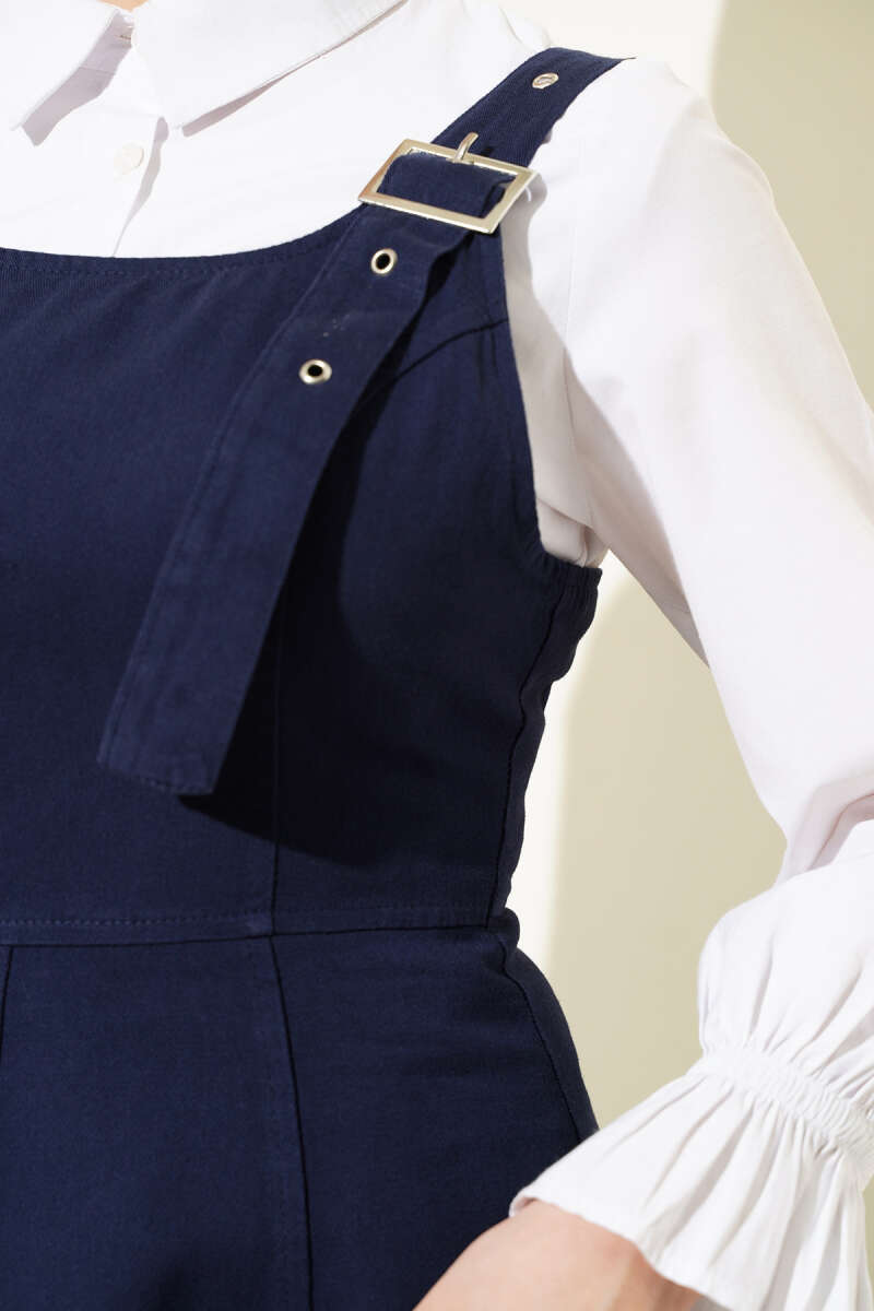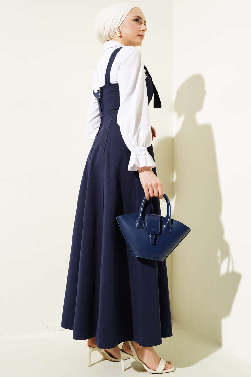 Pelerin Detaylı Düğmeli Triko Elbise Lacivert