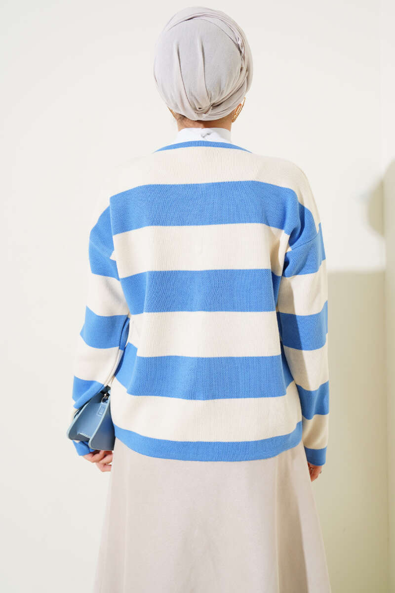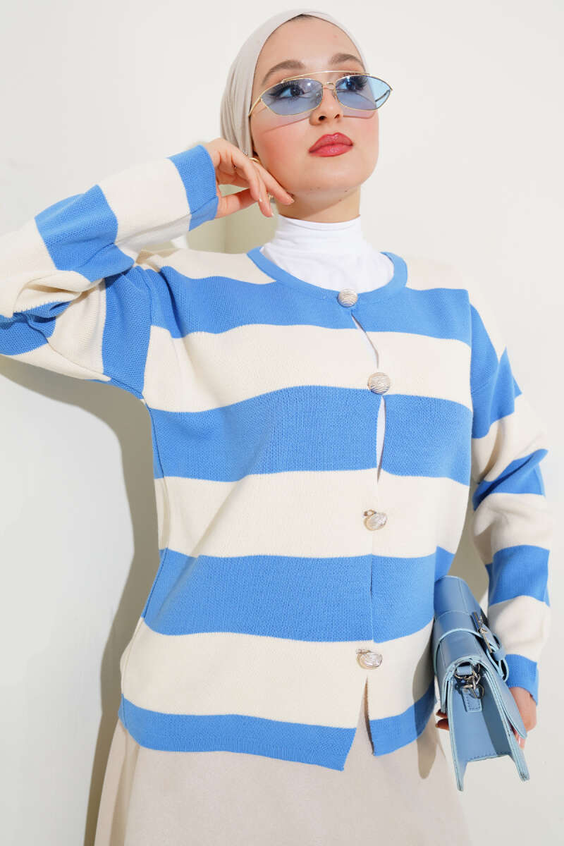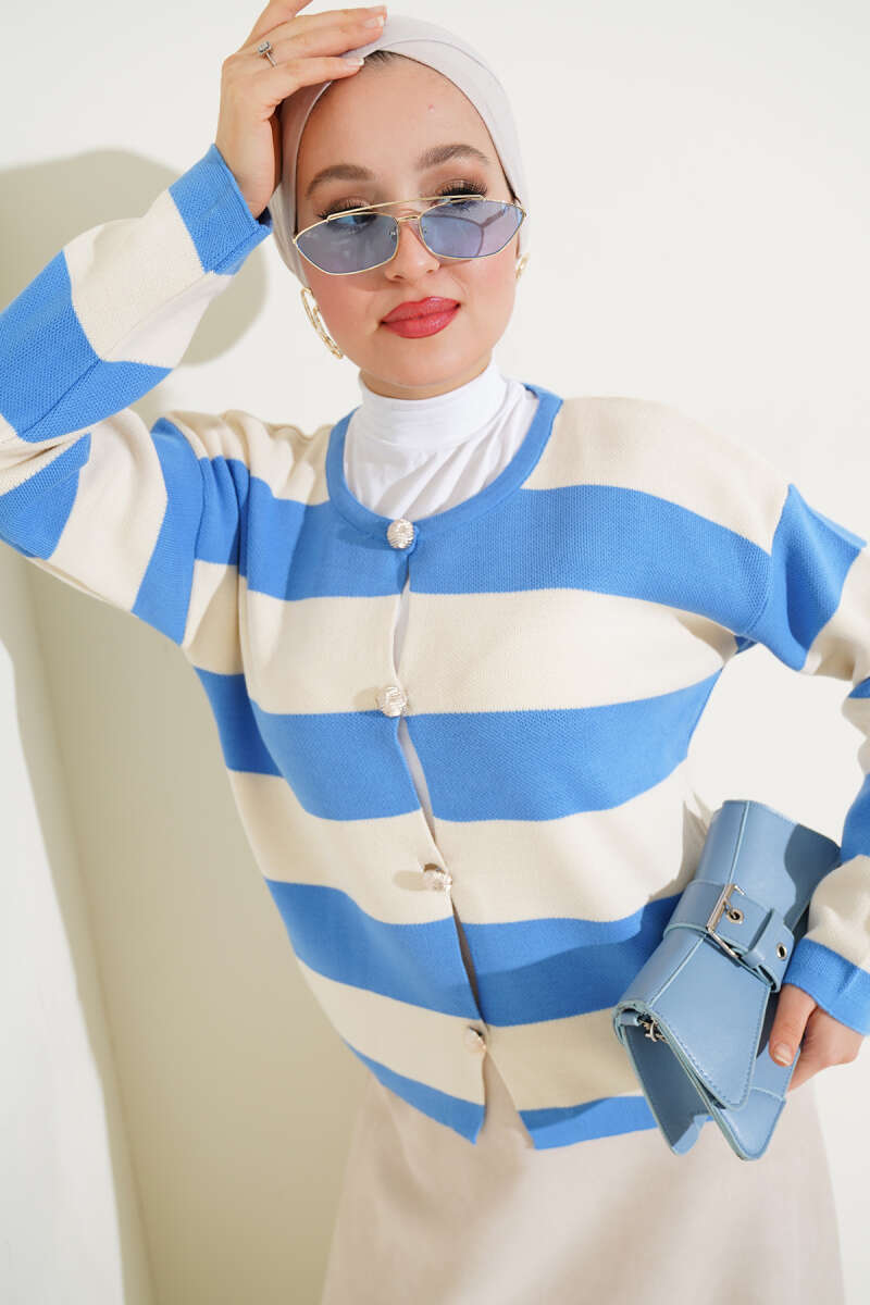 Saç Örgülü Düğmeli Triko Hırka Lacivert