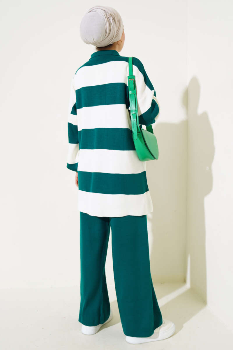 Taşlı Baklava Desen Triko İkili Takım Zümrüt