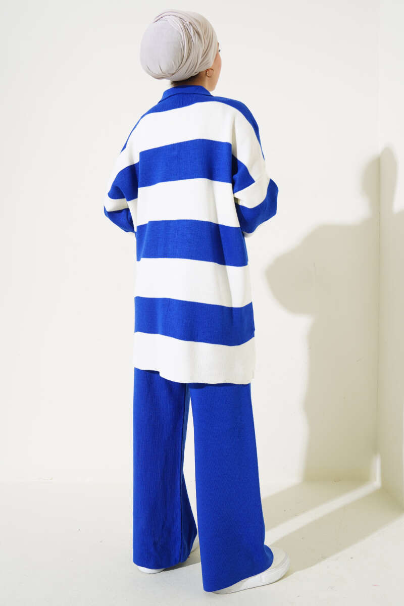 Taşlı Baklava Desen Triko İkili Takım Buz Mavisi