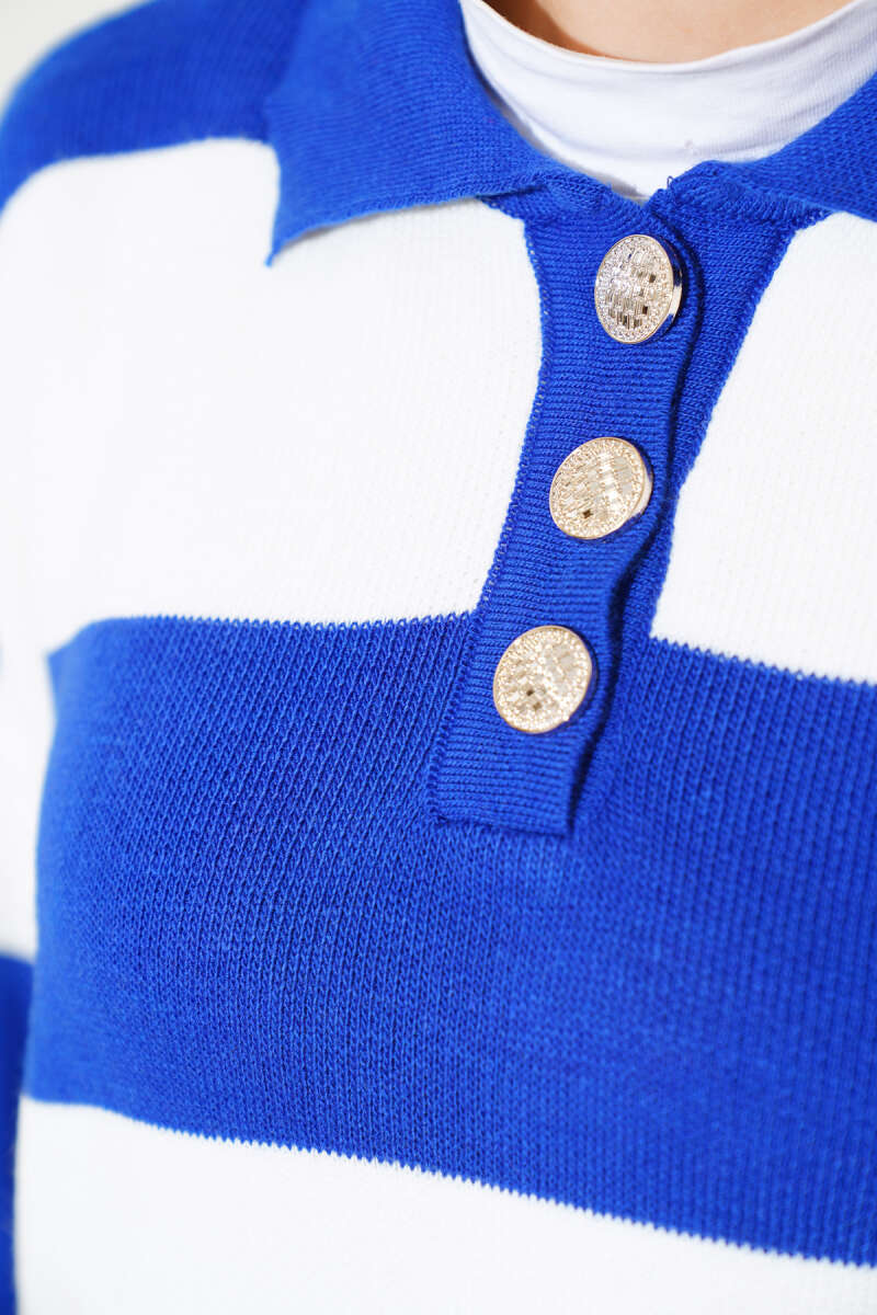 Önden Düğme Detaylı İp Bağcıklı İkili Takım Lacivert