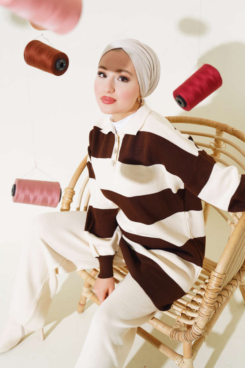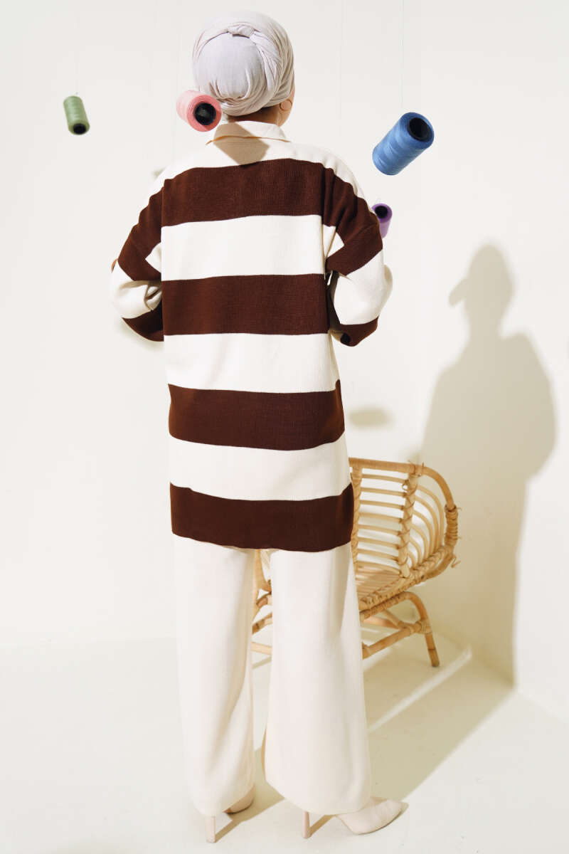 Taşlı Baklava Desen Triko İkili Takım Kahve
