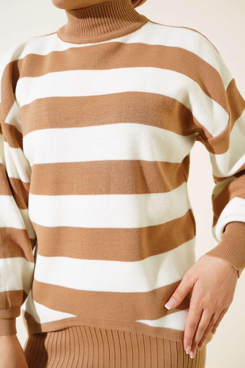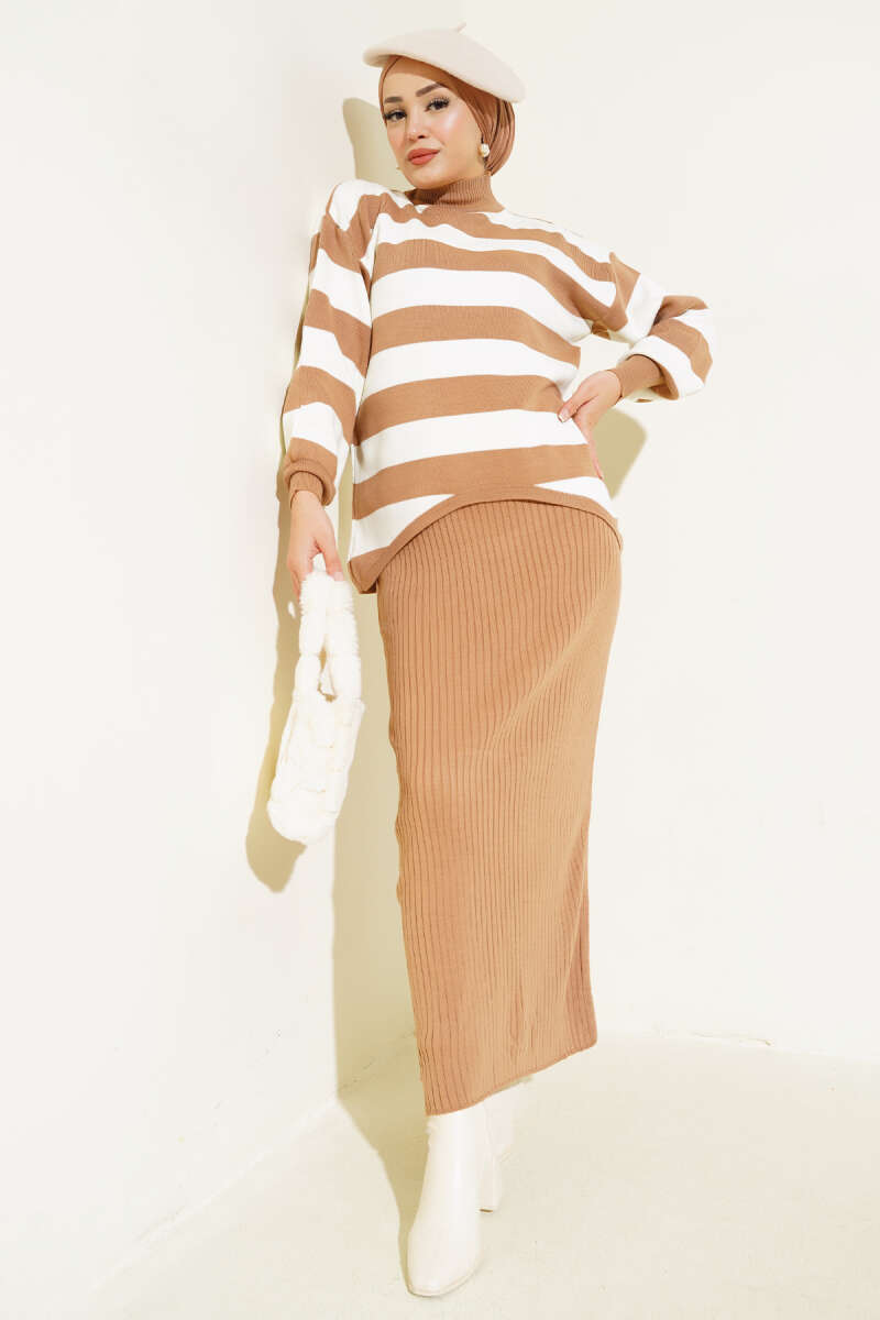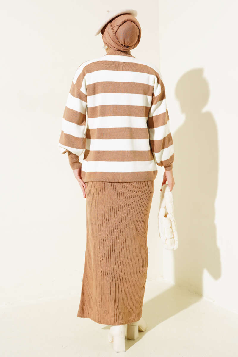 Kalın Çizgili Jile Triko İkili Takım Büsküvi