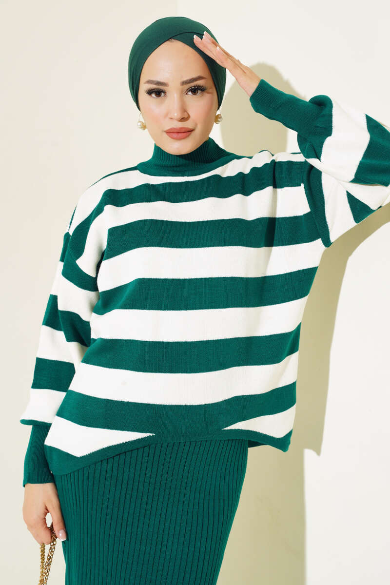 Kalın Çizgili Jile Triko İkili Takım Nefti