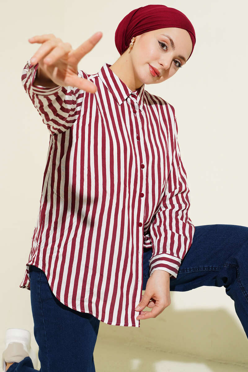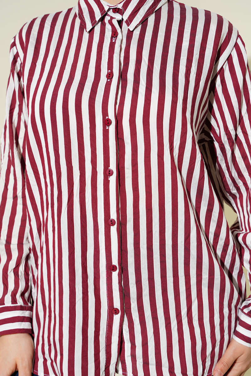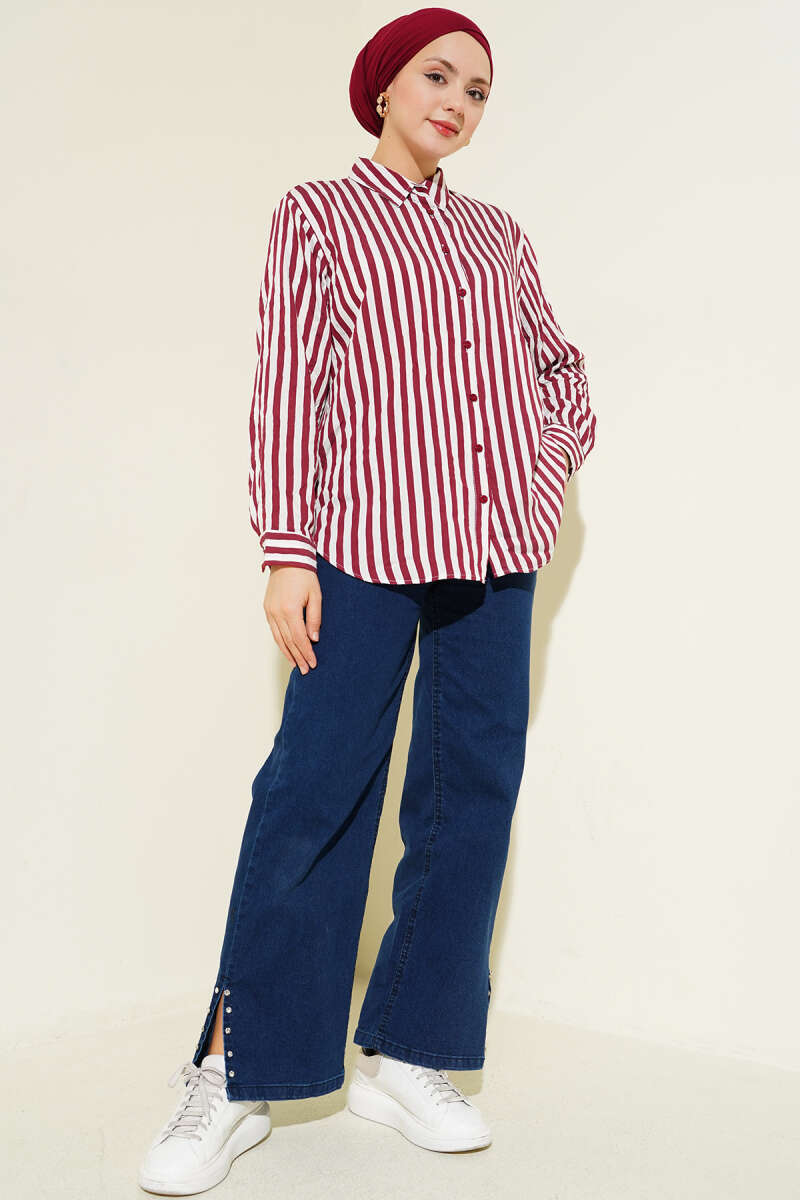 Brit Düğmeli Gül Detaylı Abiye Gömlek Bordo