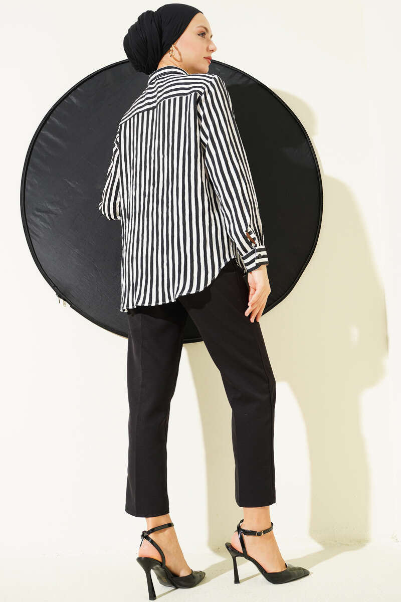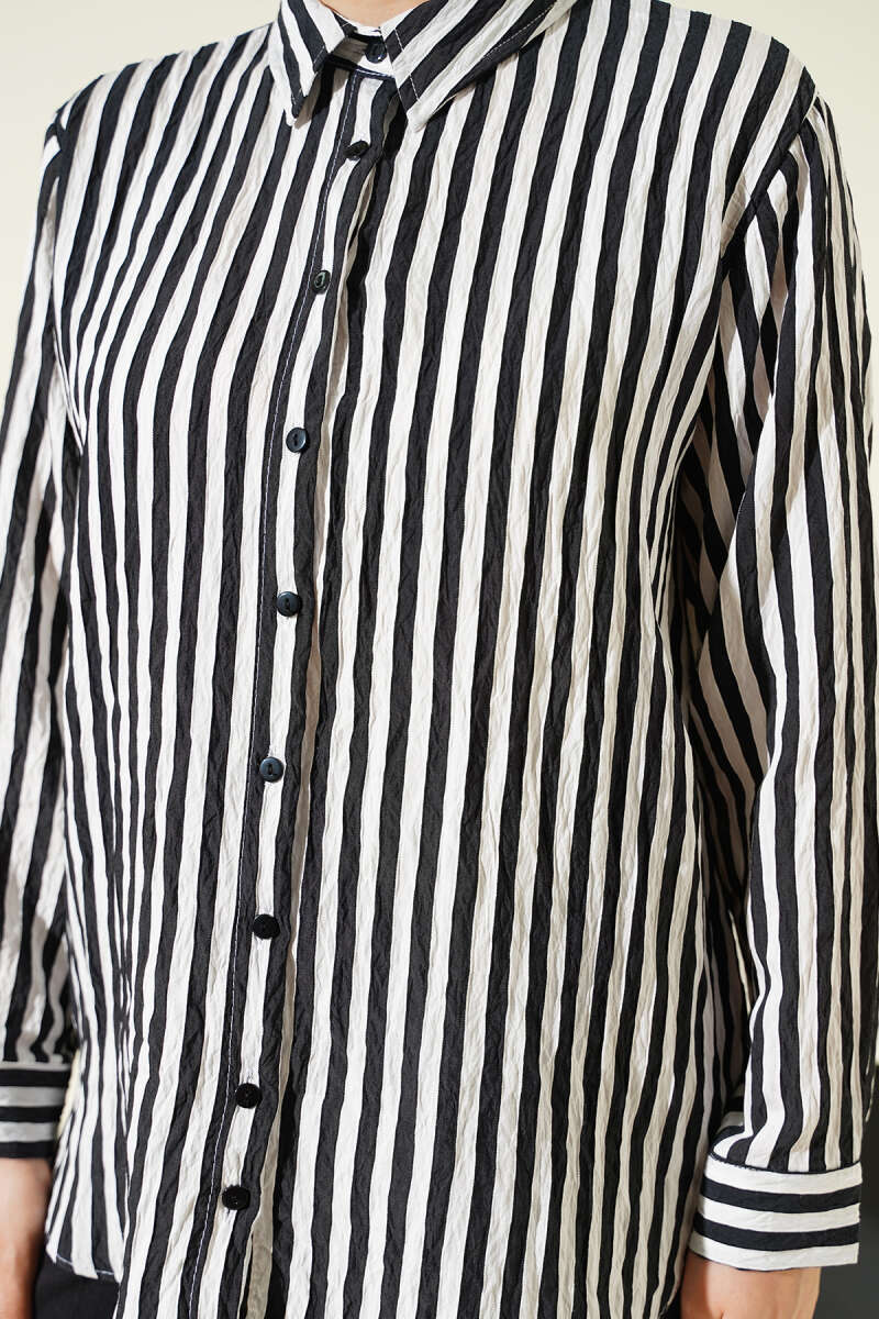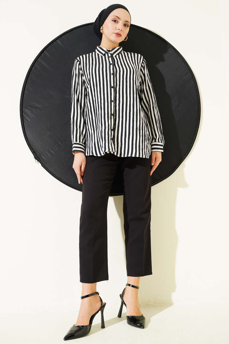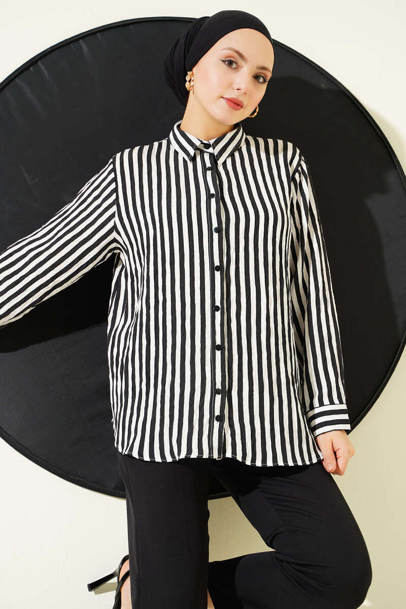Kalın Dik Çizgili Basic Gömlek Siyah