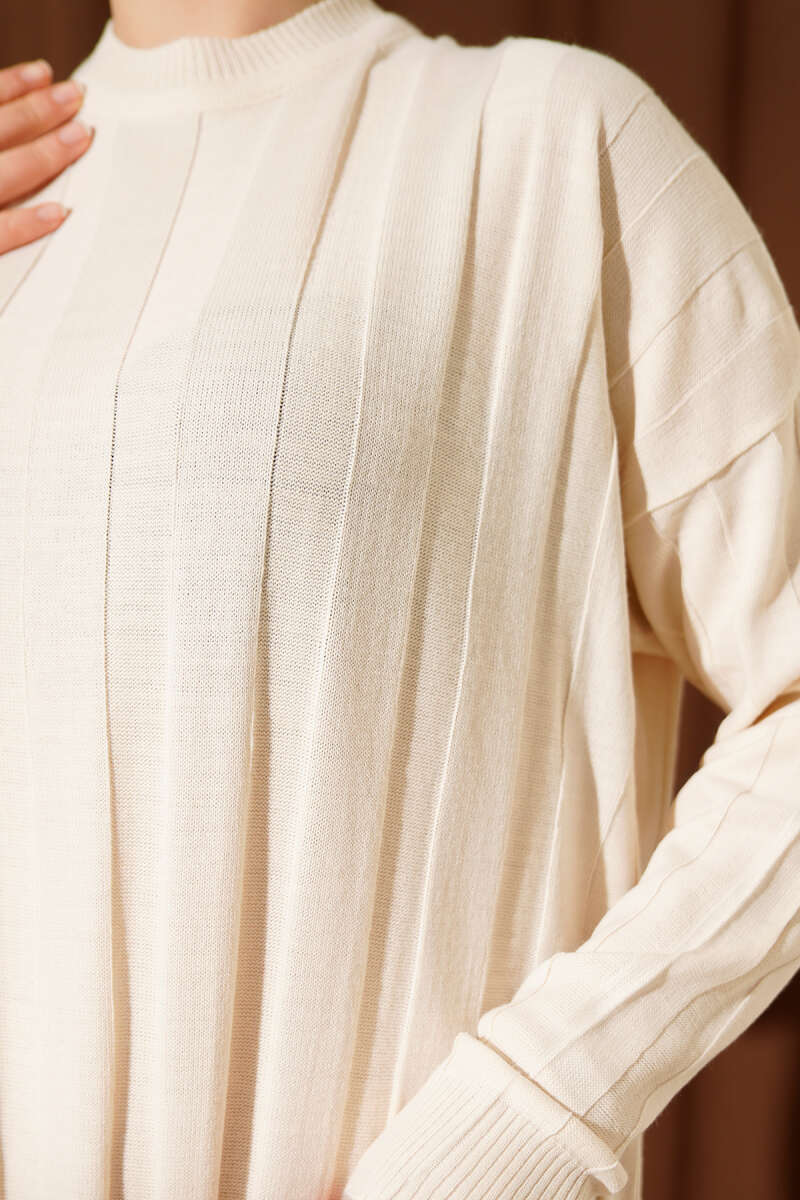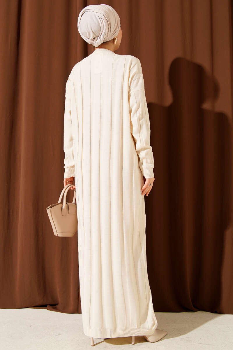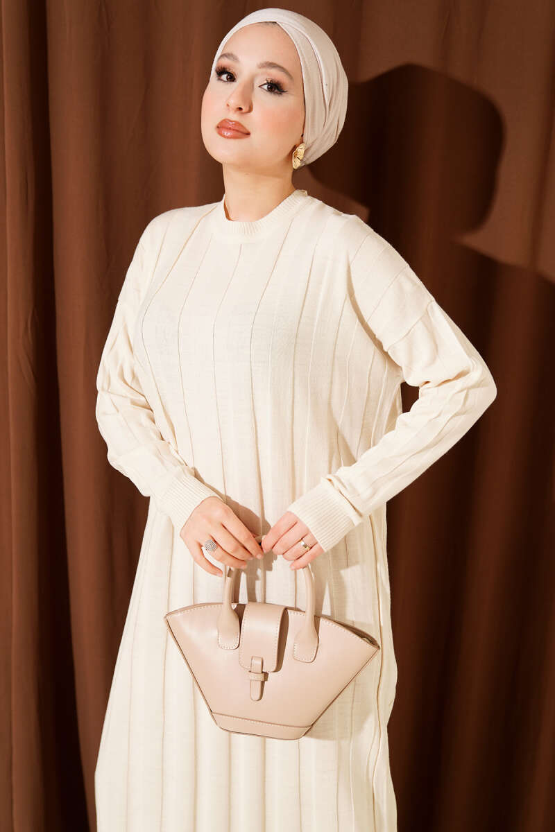 Saç Örgülü Triko Elbise Bej