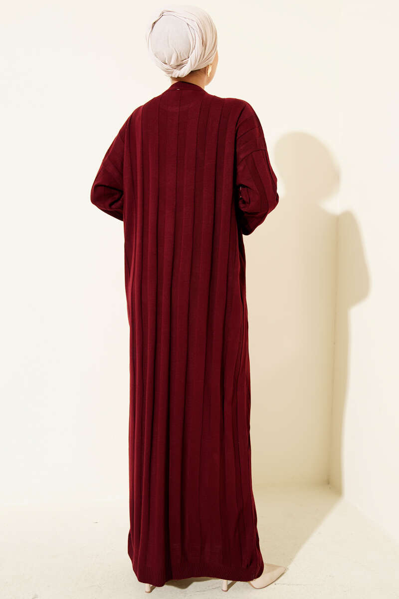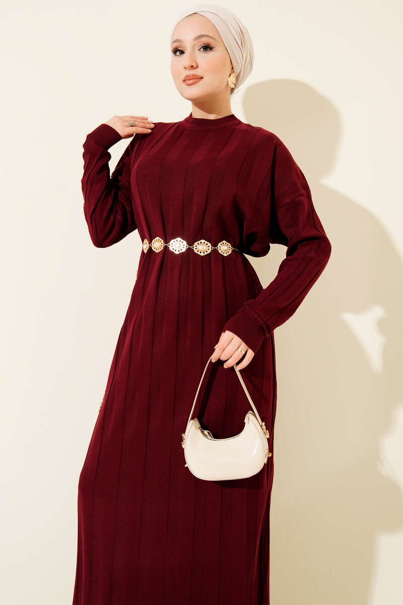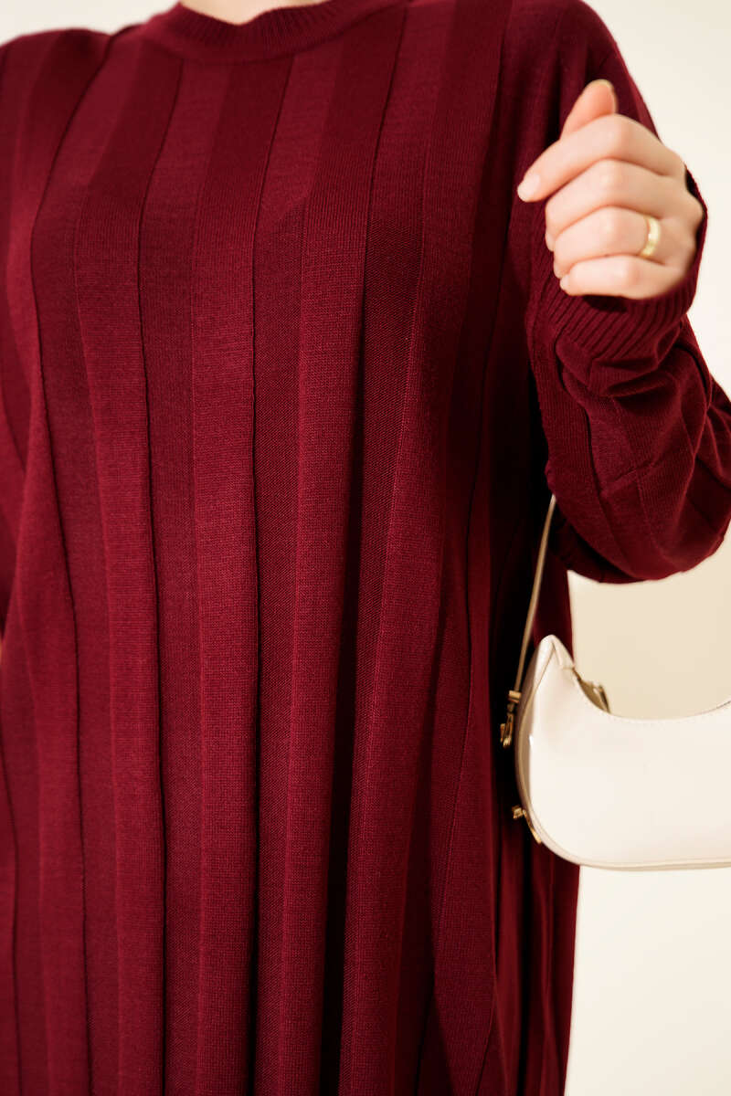 Baklava Desen Ajurlu Triko Elbise Bordo