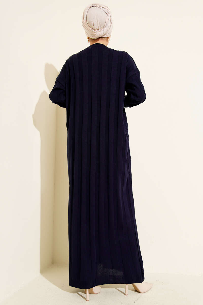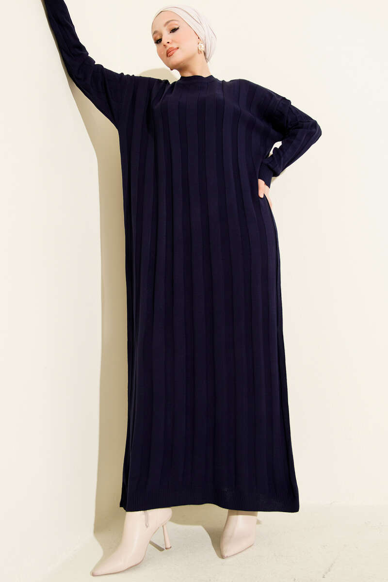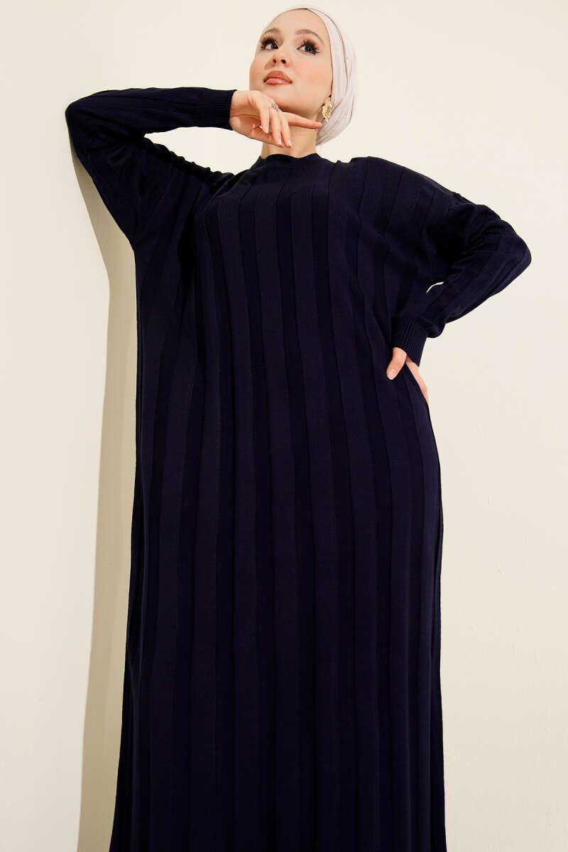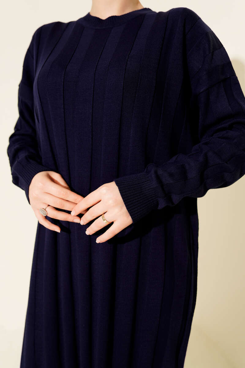 Baklava Desen Ajurlu Triko Elbise Lacivert