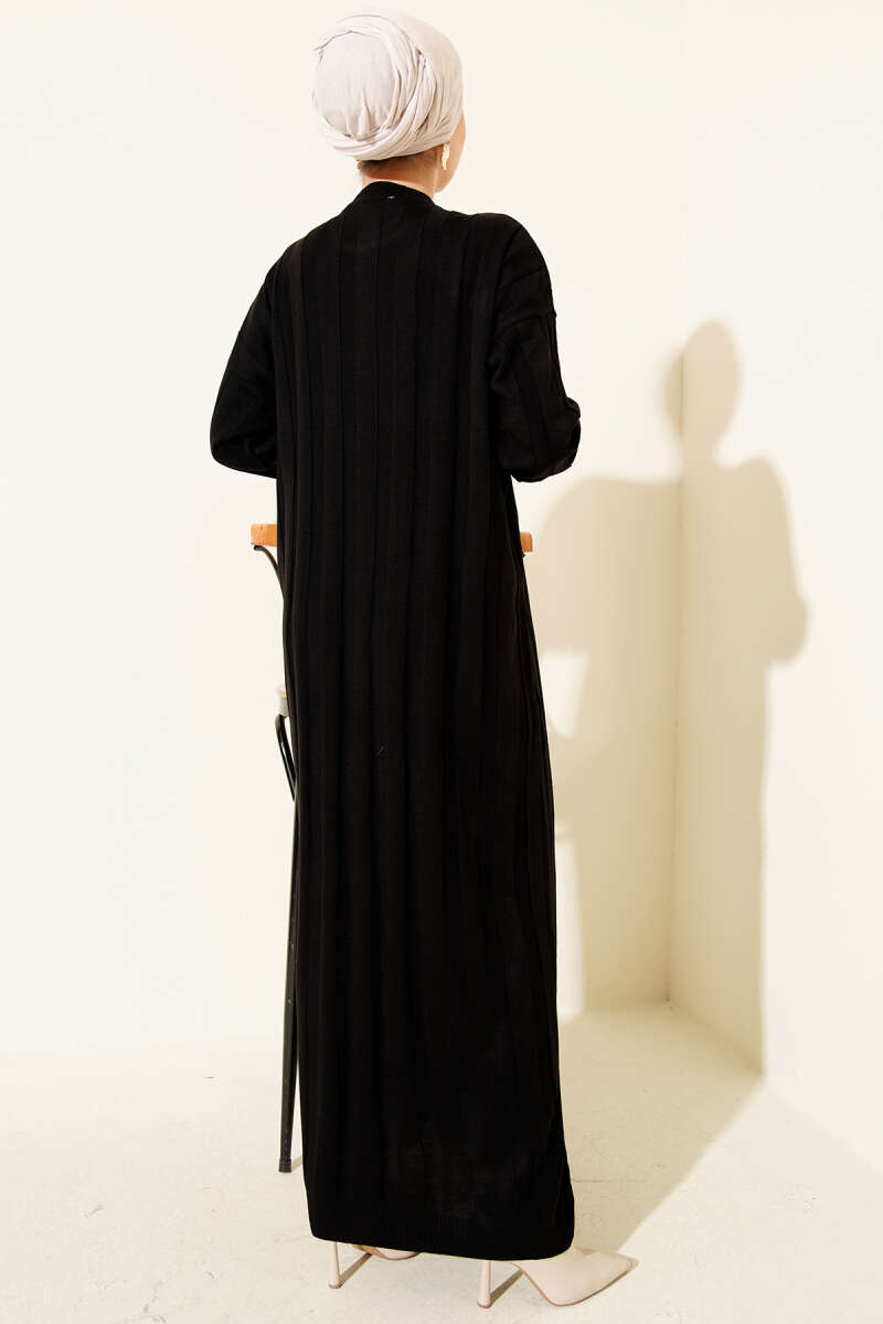 Bel Pensli Kuşaklı Dabıl Elbise Siyah