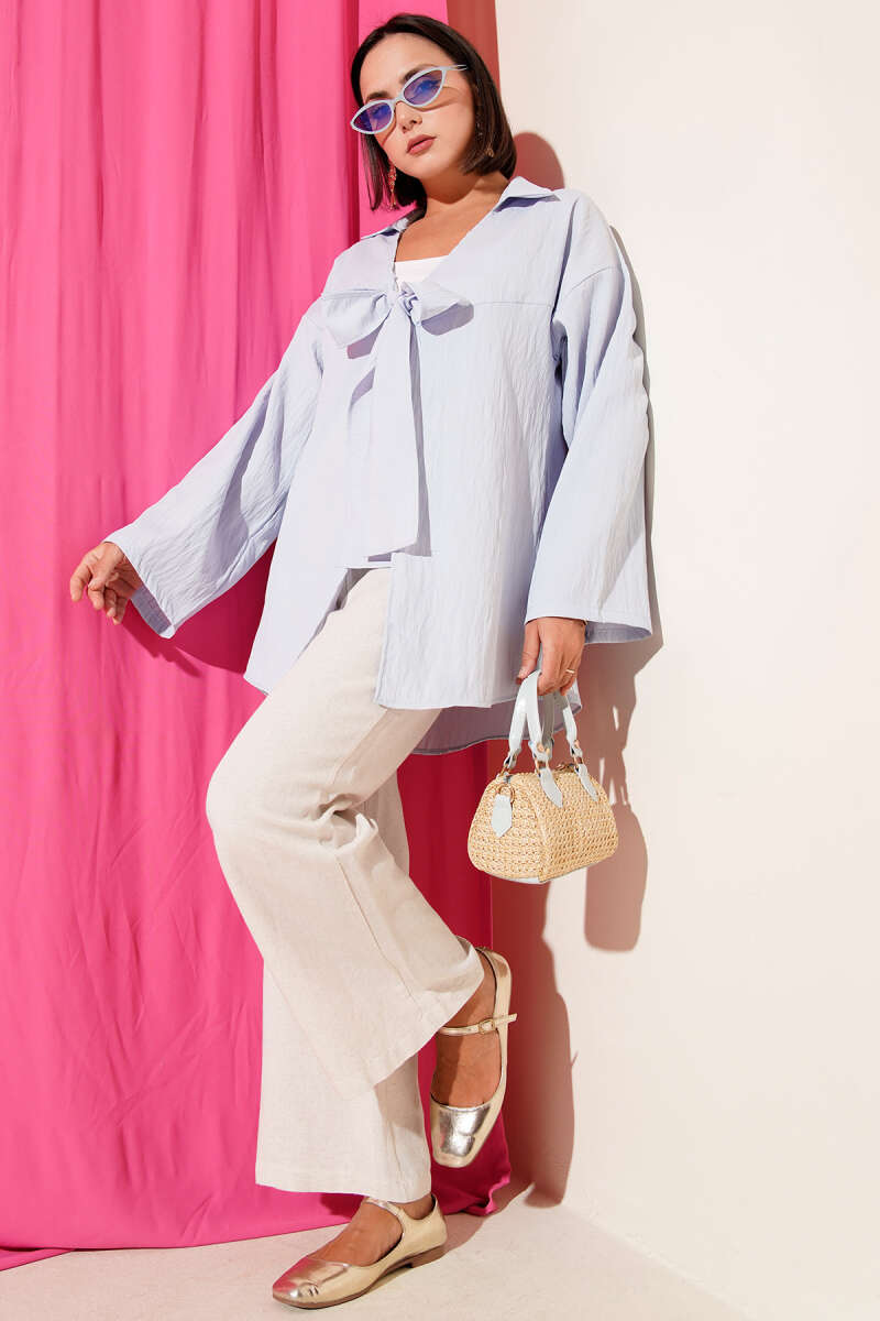 Loyşa Oval Kesim Oversize Tunik Pudra