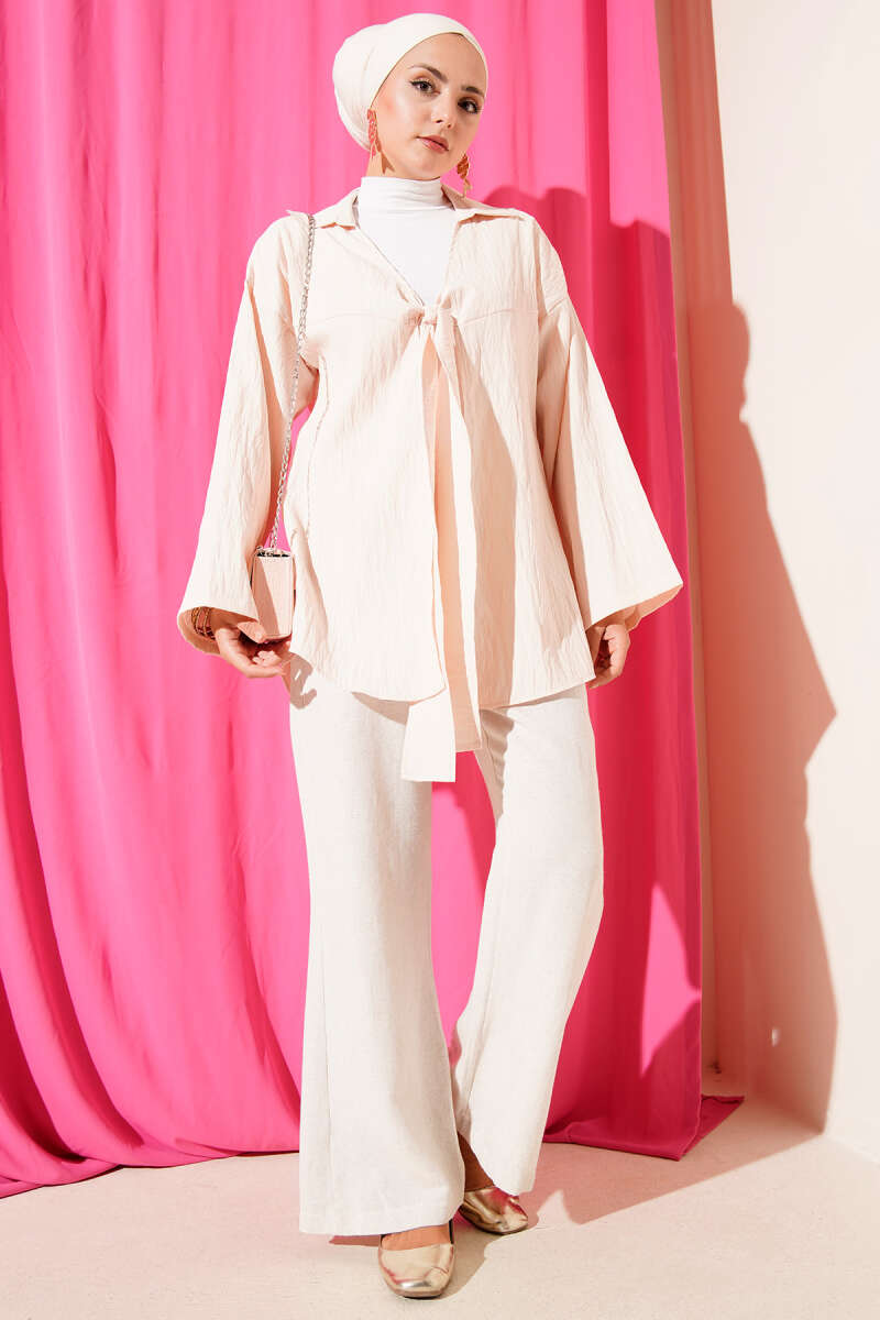 Bilek İpli Fitilli Kaşe Tunik Kahve