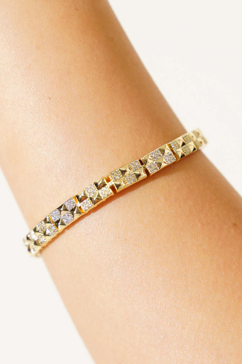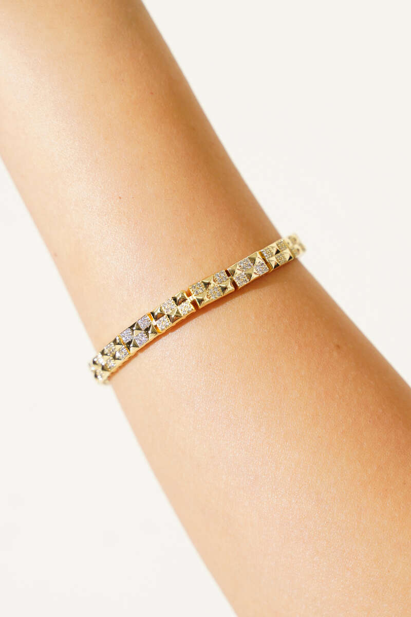 Yıldızlı Sıra Taşlı Bileklik Gold