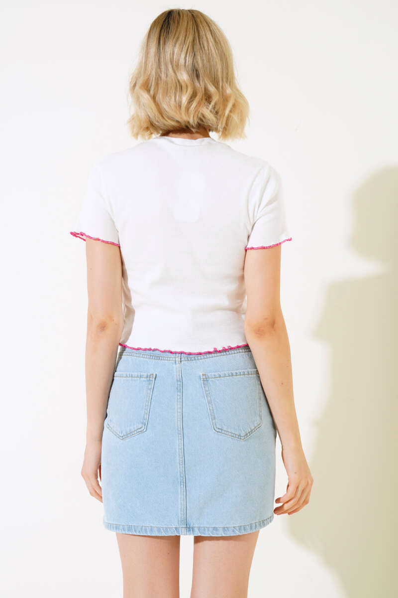 Kalp Baskılı Önü Büzgülü T-shirt Ekru