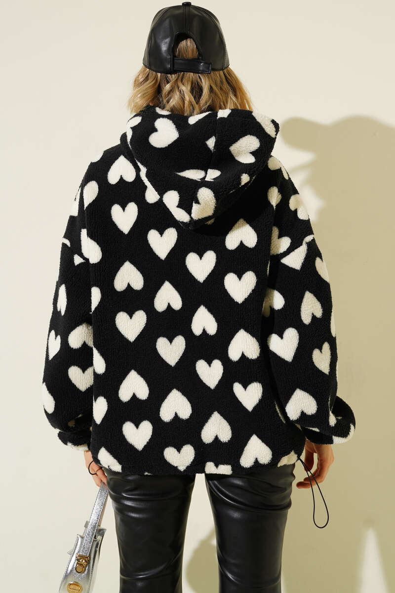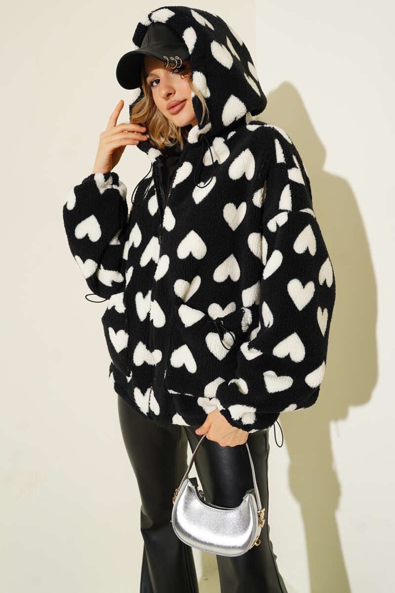 Kalp Baskılı Peluş Hırka Siyah