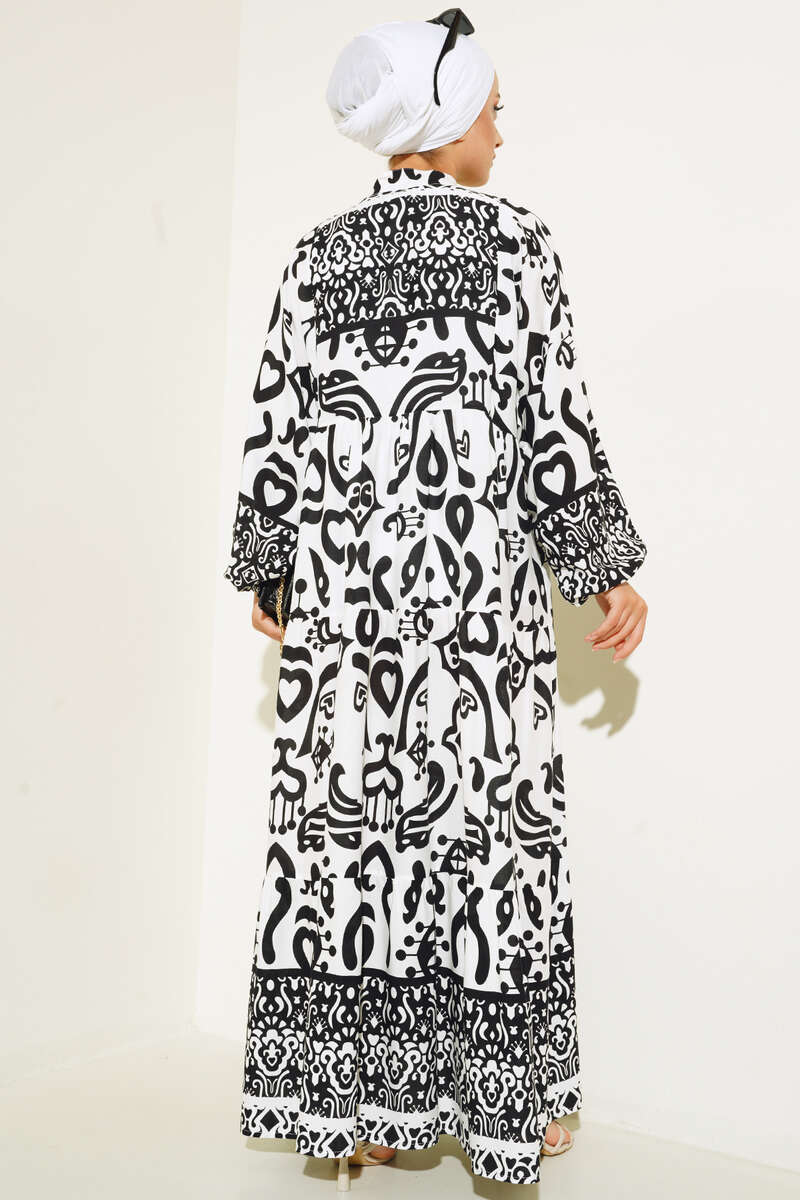 Kalp Desenli Elbise Beyaz