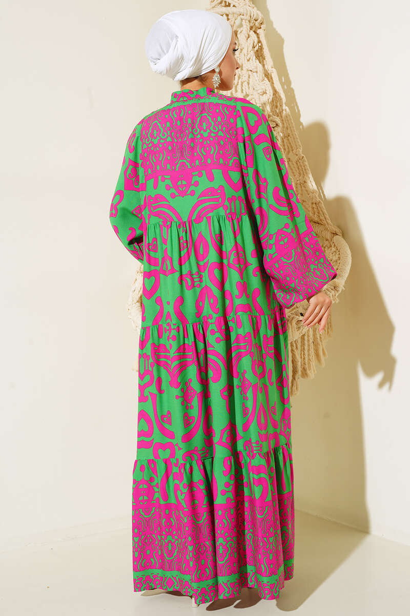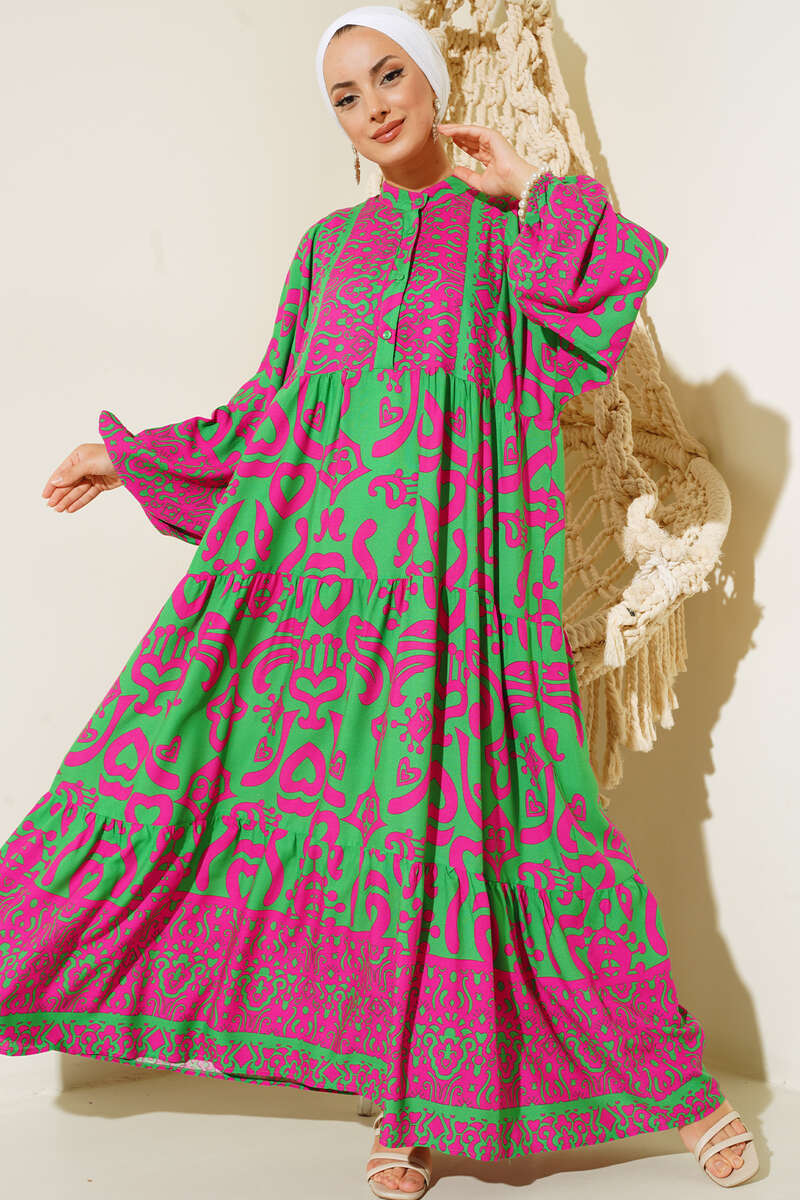 Kalp Desenli Elbise Yeşil