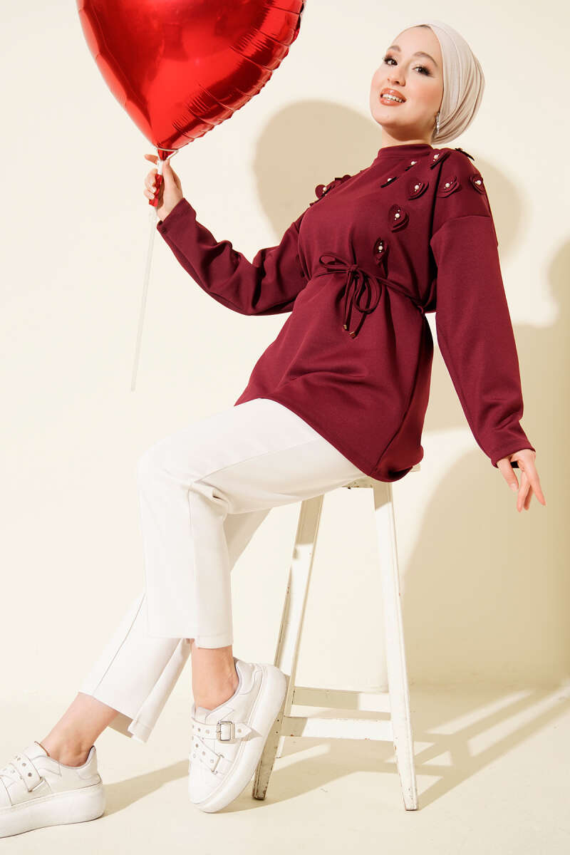 Yan Yırtmaçlı Duble Kol Tunik Mürdüm
