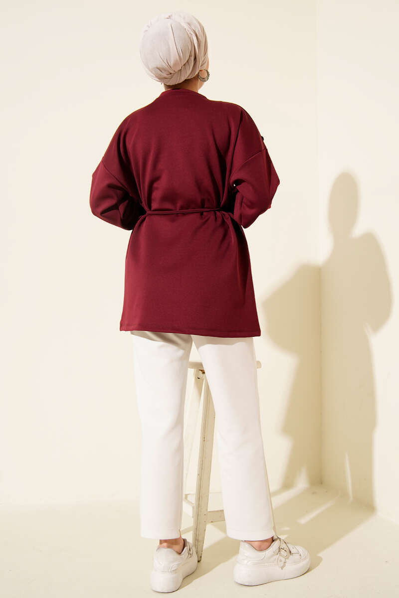 Kol Ucu Düğmeli Şal Yaka Triko Hırka Bordo