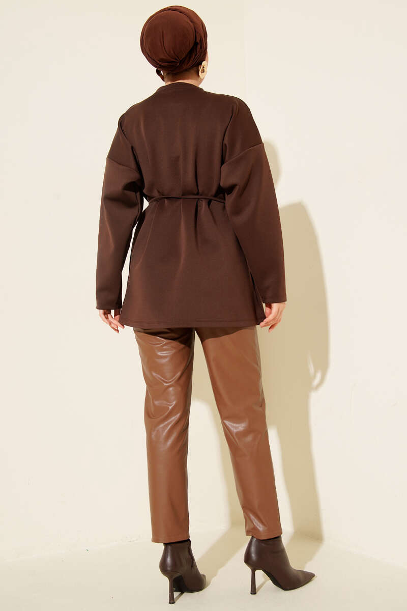 Göğüs Parça Detaylı Kaşe Kaban Kahve