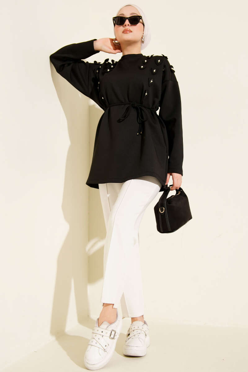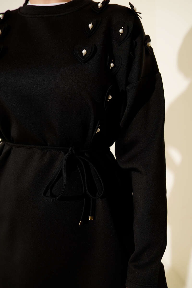Serpme Taşlı Triko Tunik Siyah