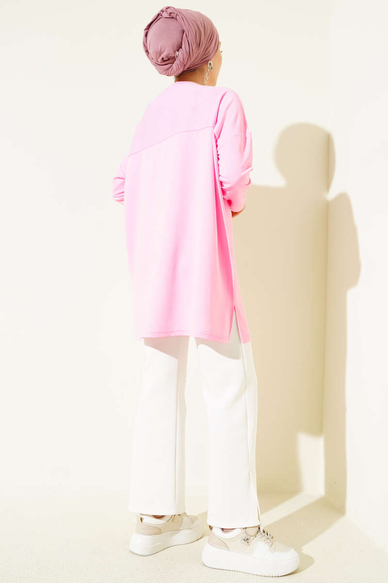 Kalp Detaylı Basic Tunik Pembe