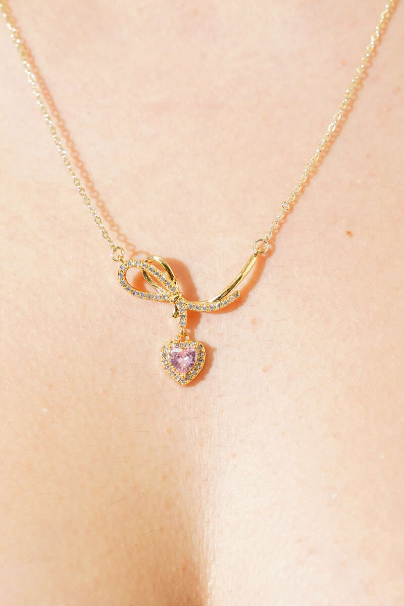 Kalp Detaylı Fiyonk Kolye Gold