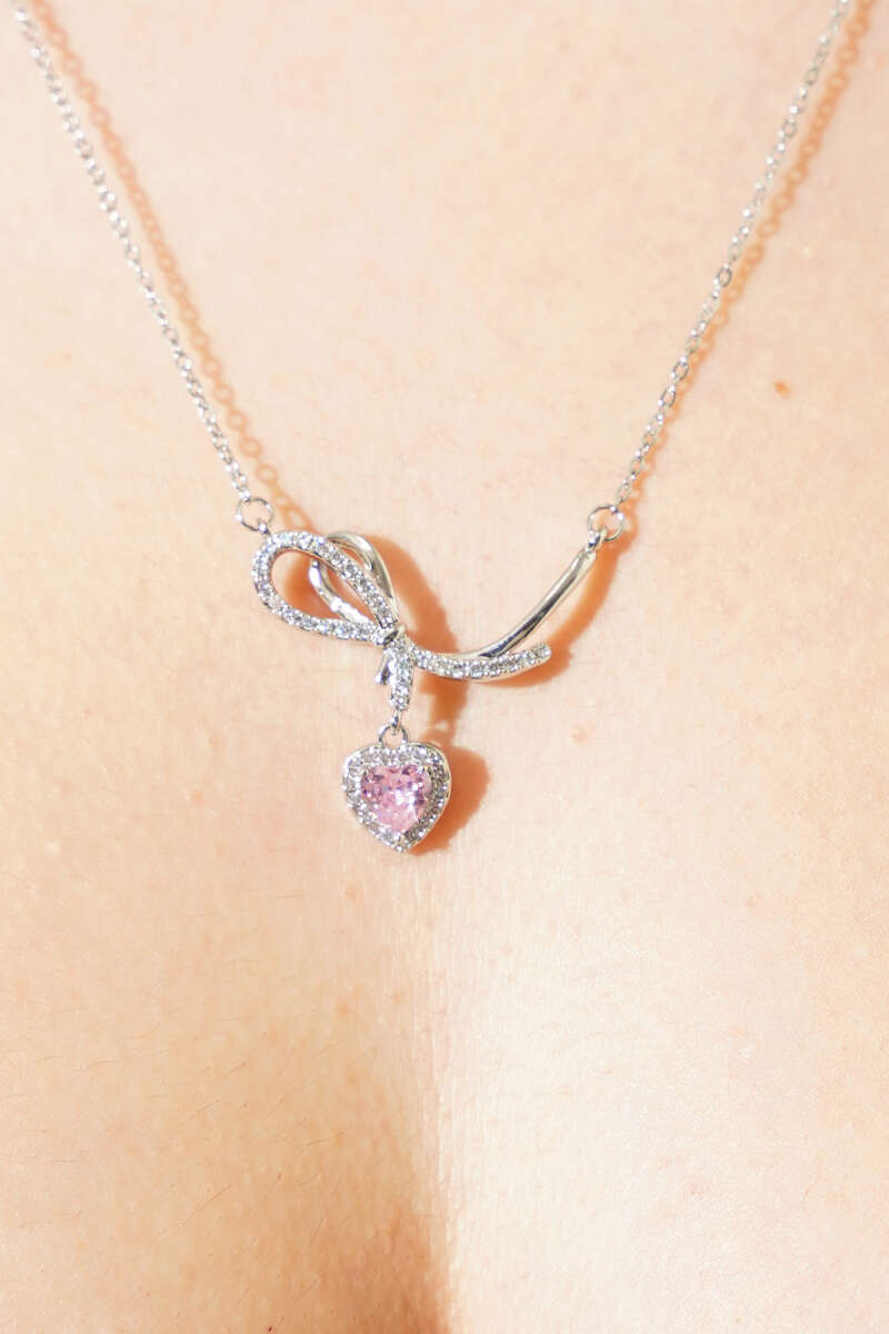 Pembe Taşlı Geometrik Kalp Kolye Gümüş