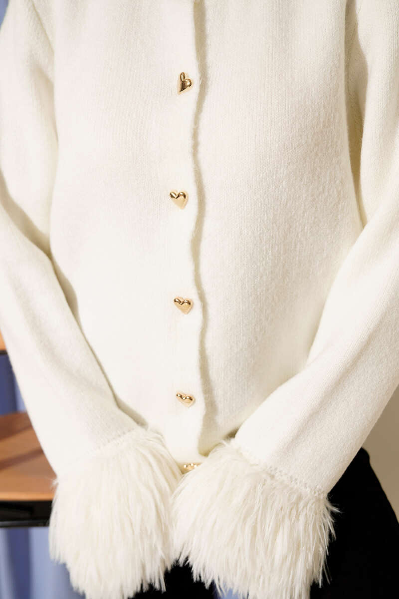 Şerit Fırfırlı Yumoş Kısa Triko Hırka Ekru