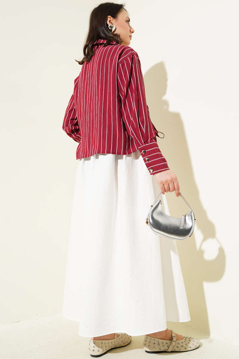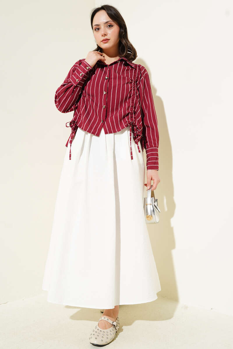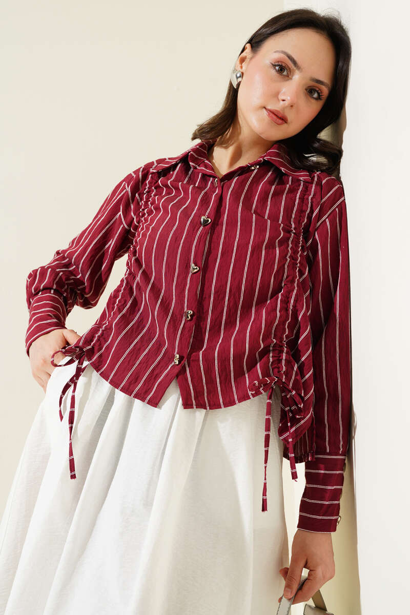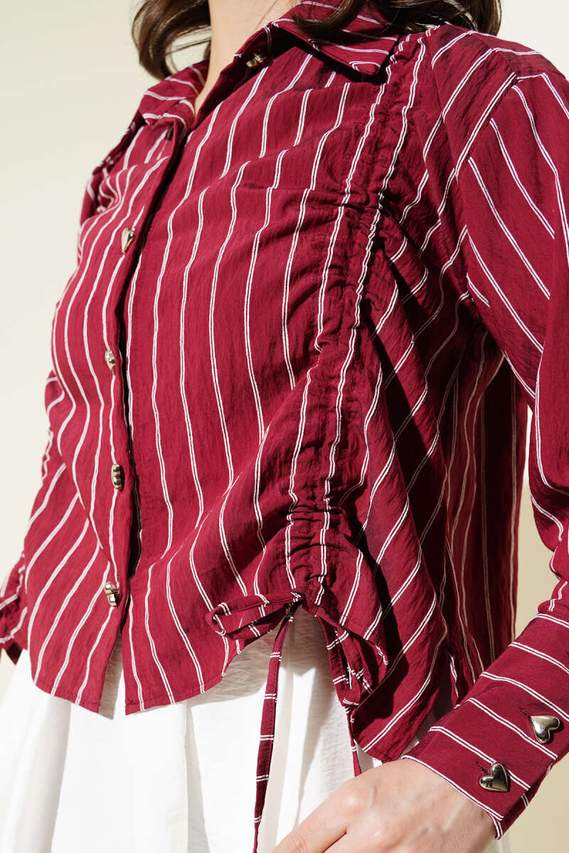 Kalp Düğmeli Önü Büzgülü Kısa Gömlek Bordo