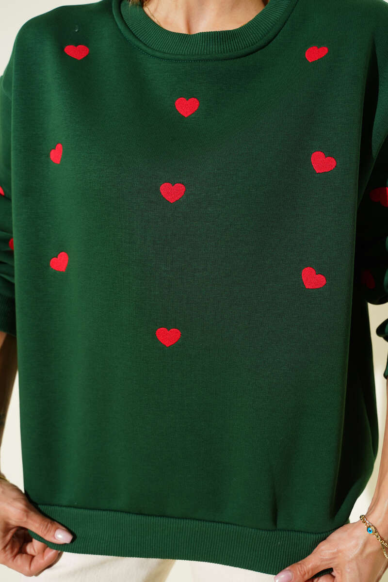 Kalp Nakış Detaylı Sweatshirt Siyah