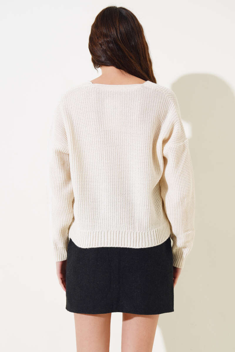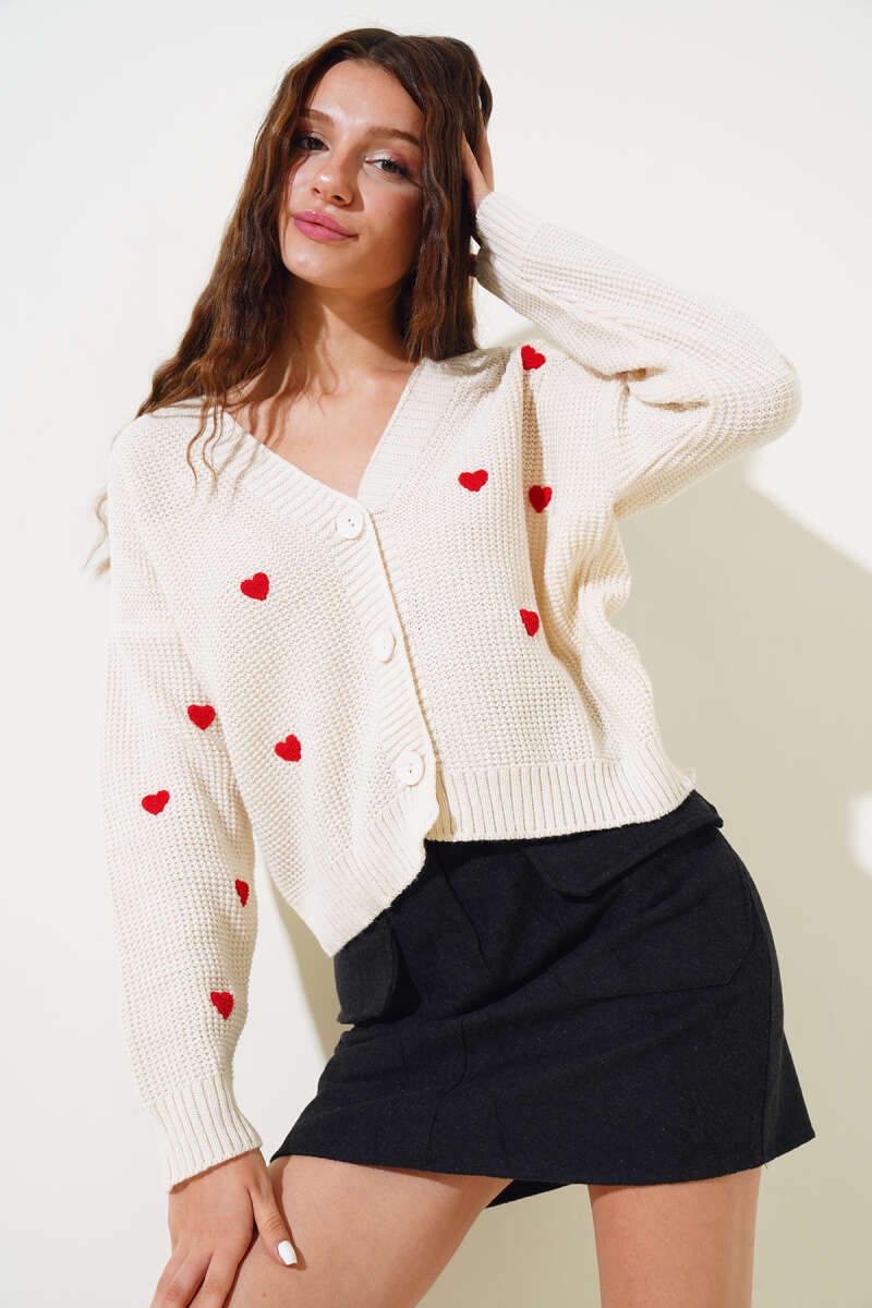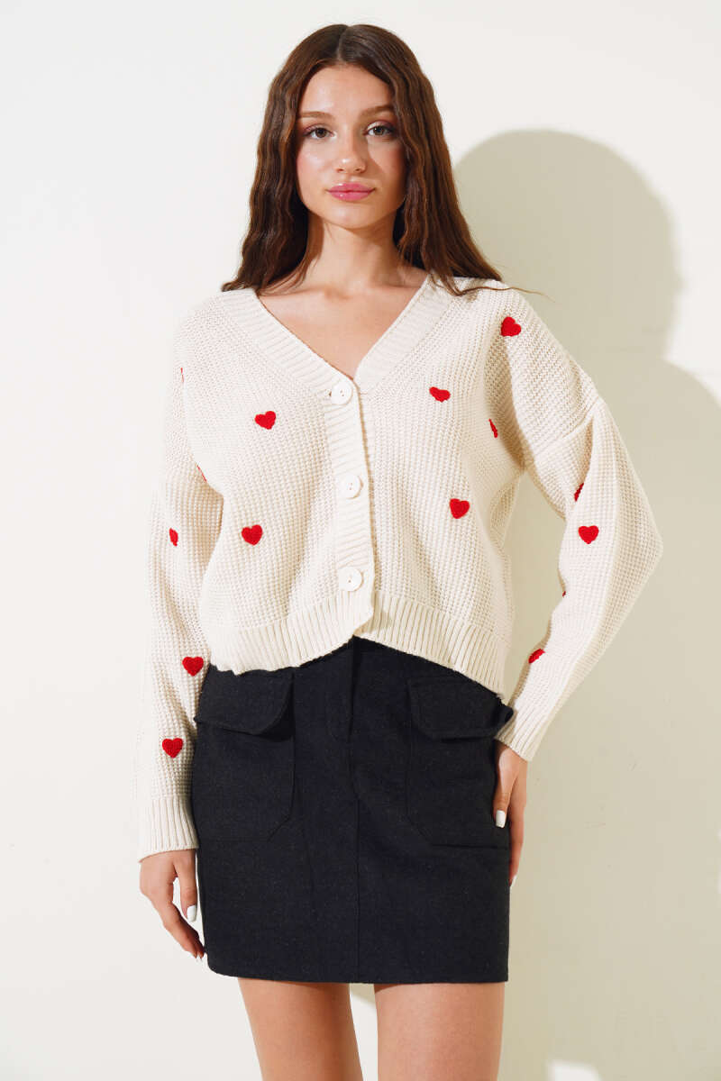 Deniz Yıldızı Düğmeli Triko Hırka Vizon