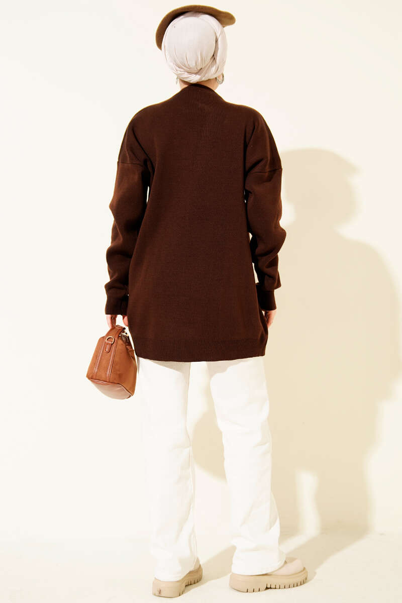Pelerinli Fitilli Triko Kazak Kahve