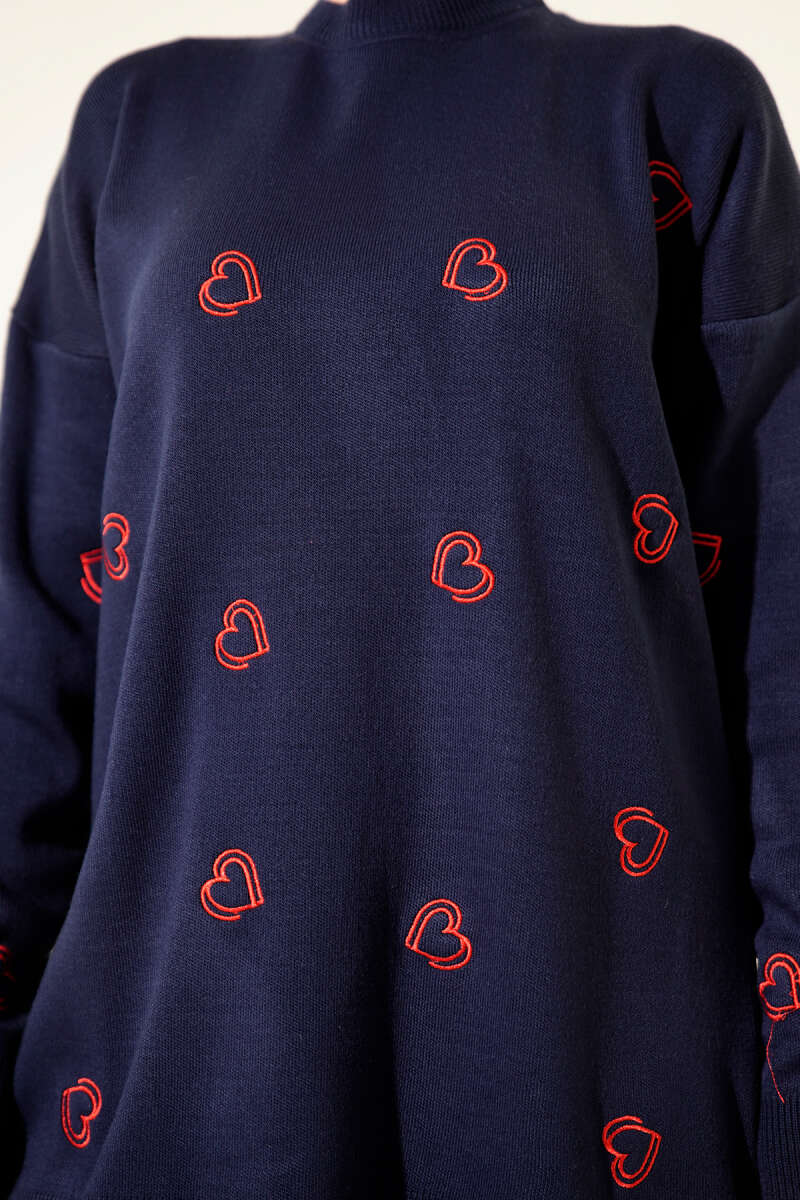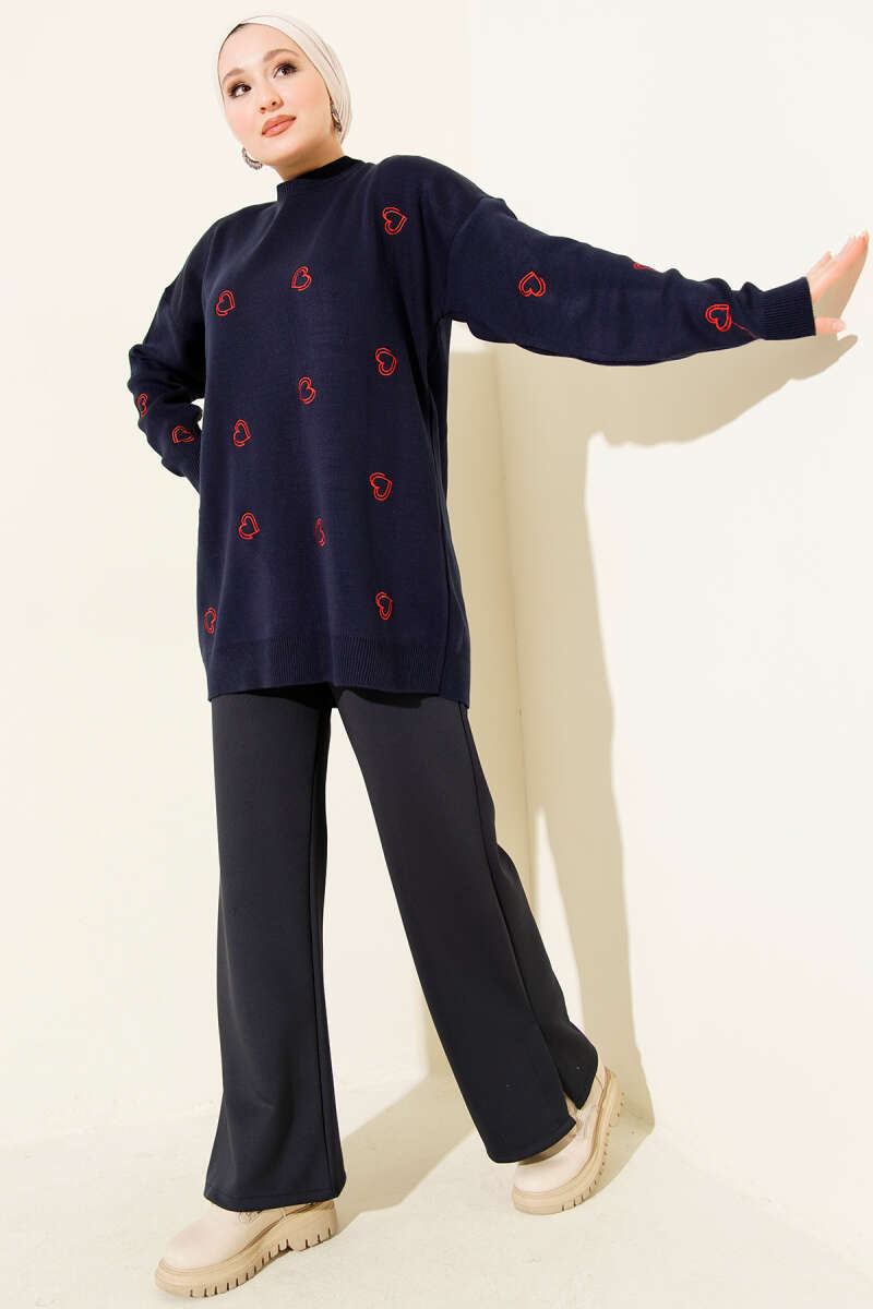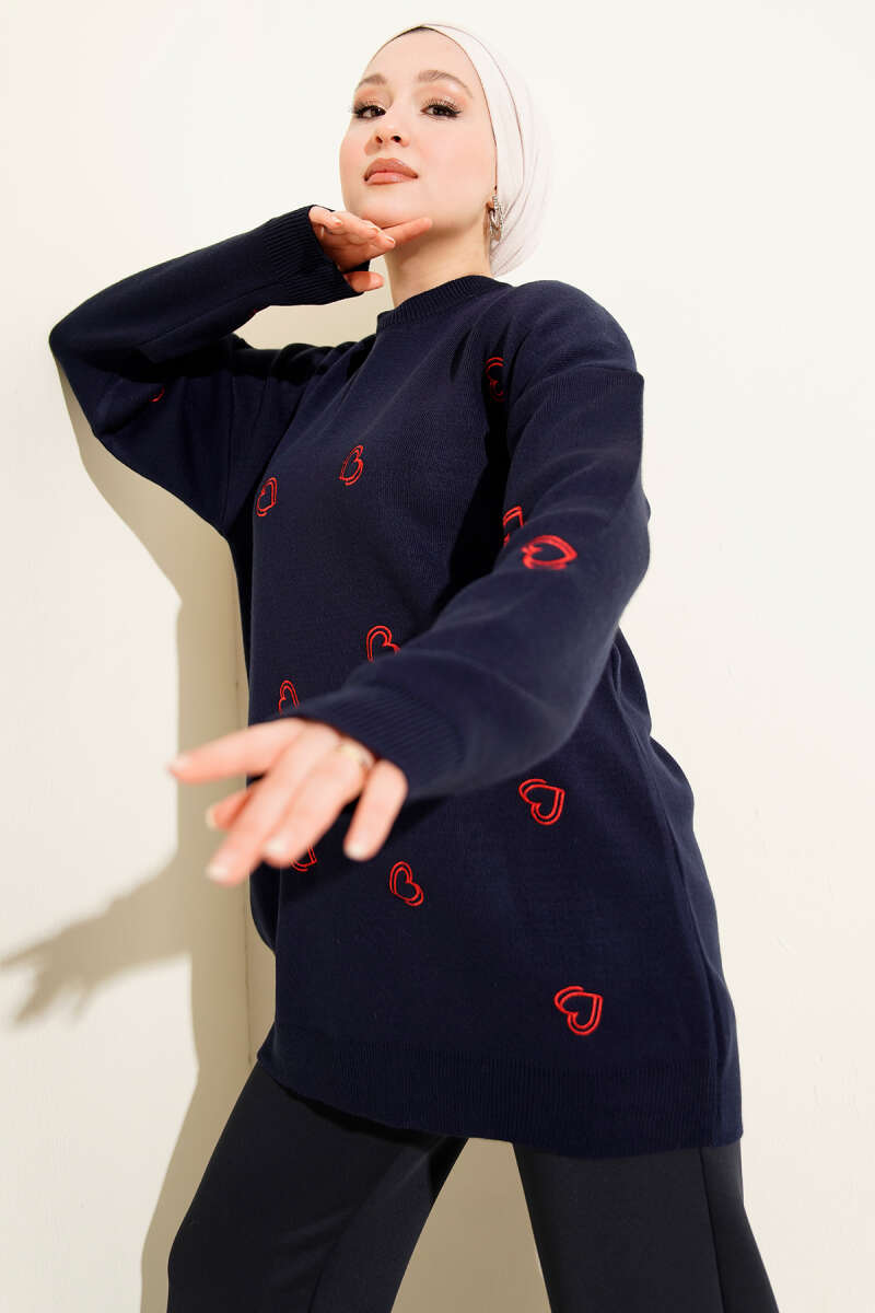 Kalp Nakışlı Triko Kazak Taş