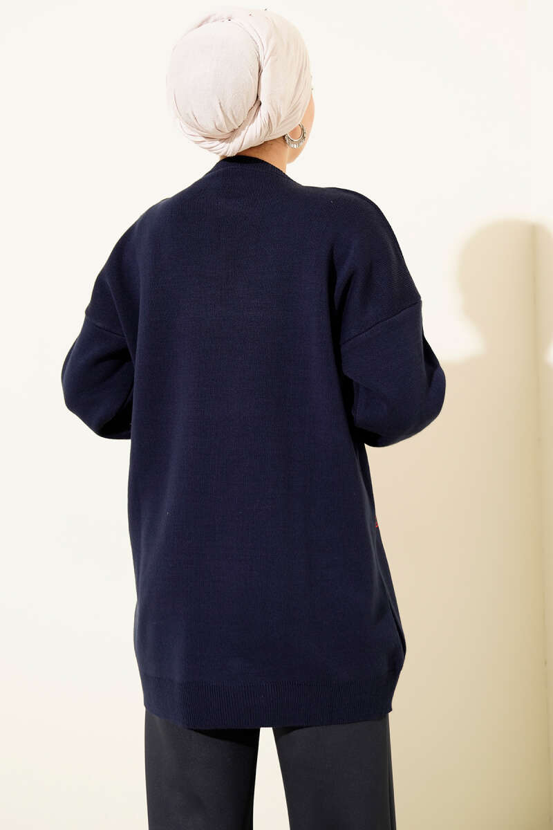Zigzag Desen Triko Kazak Lacivert