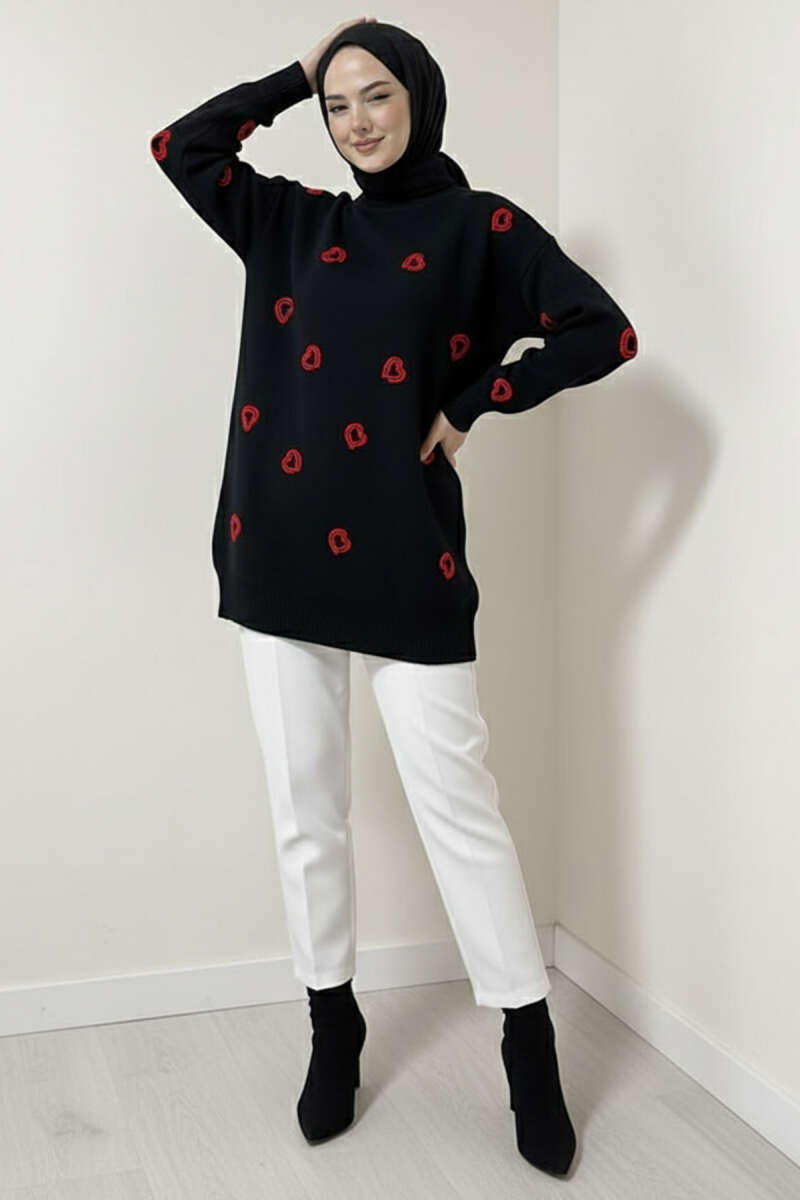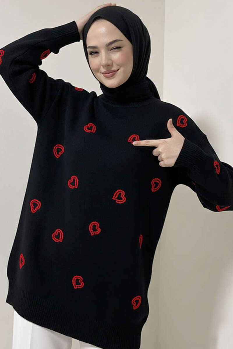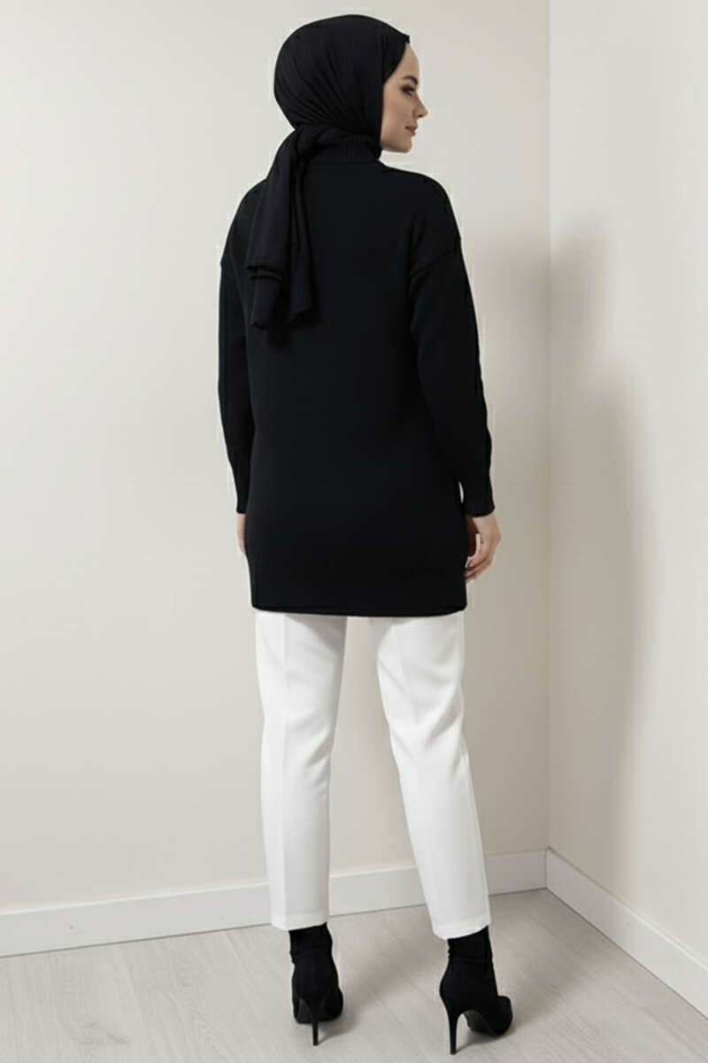 Bisiklet Yaka Sakal Detaylı Kazak Siyah