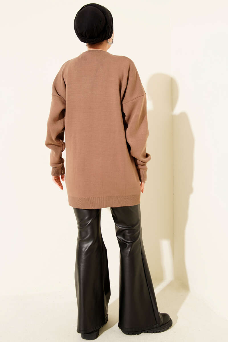 Balıkçı Yaka Parmak Geçirmeli Triko Kazak Kahve