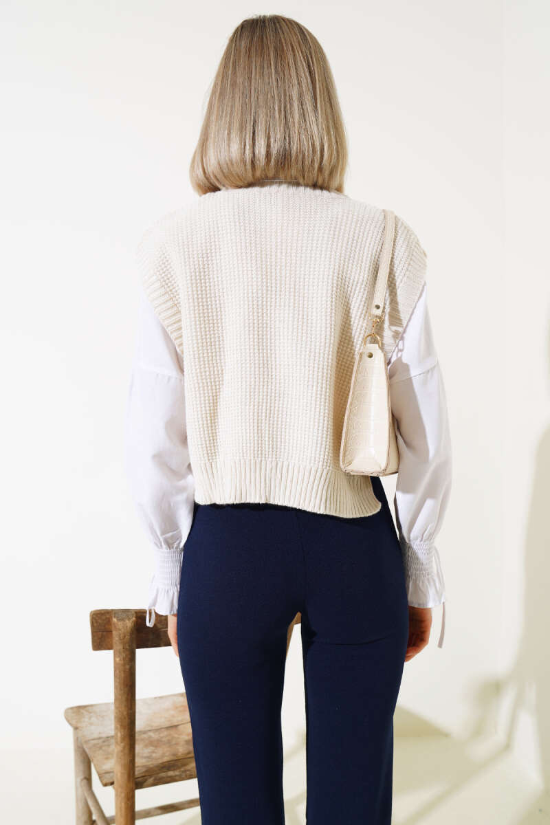 Balıkçı Yaka Balon Kol Triko Tunik Mavi
