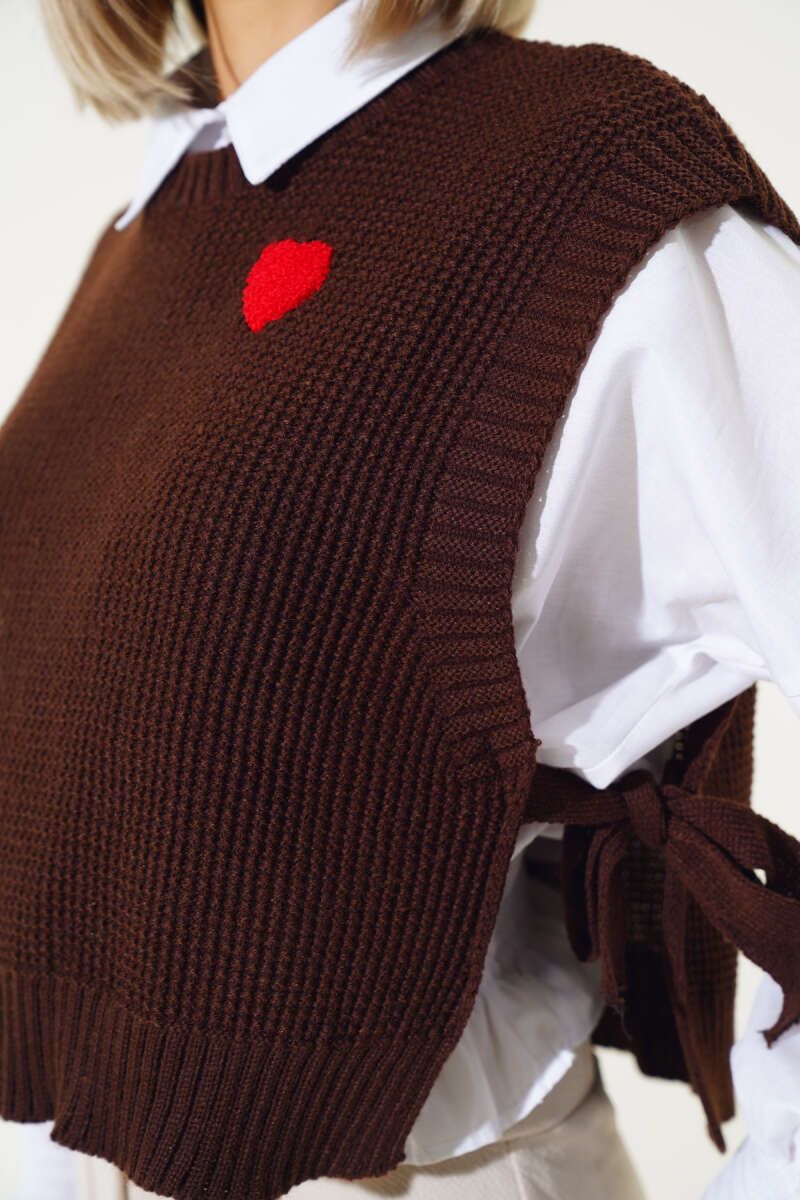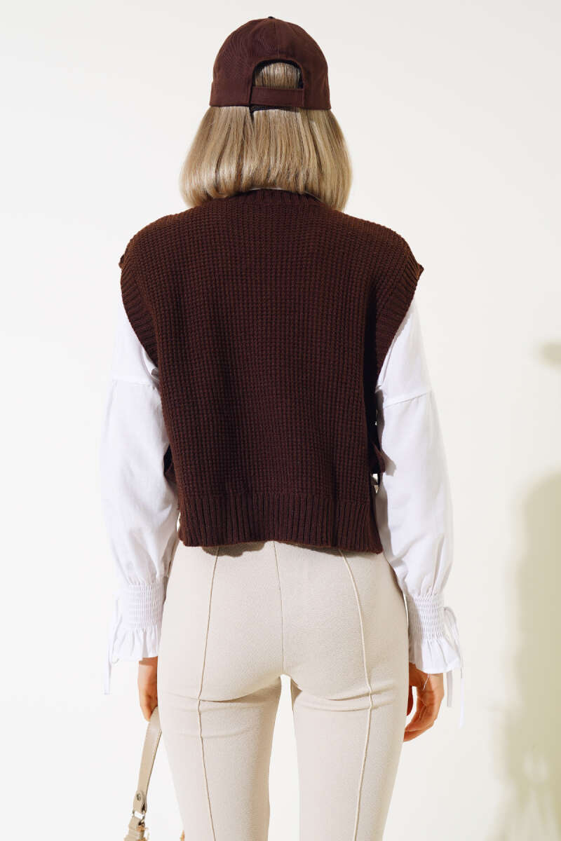 Serpme Taşlı Çizgili Sakallı Kazak Kahve
