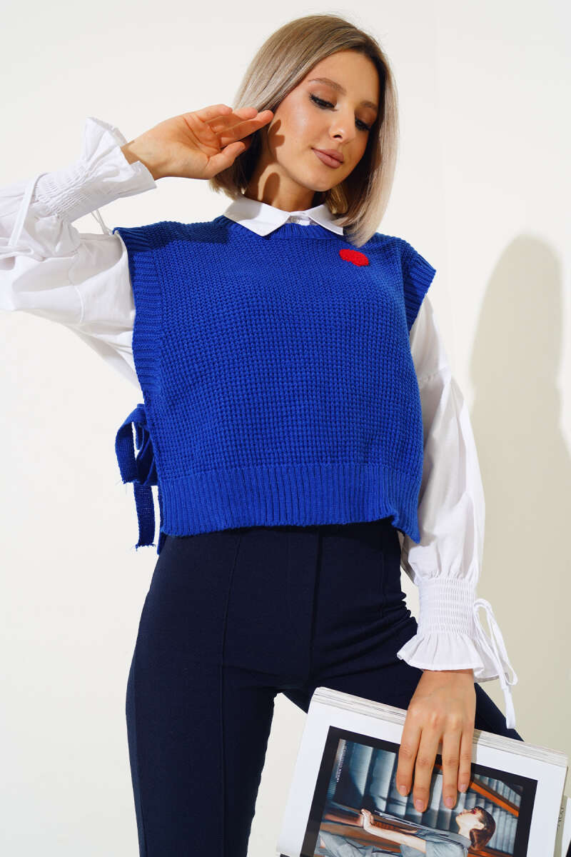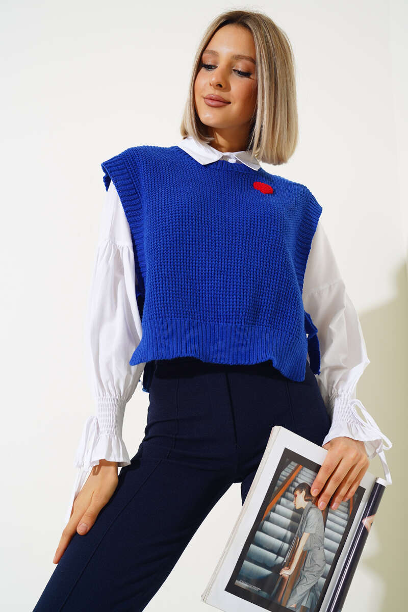 Önü Dantel Örgü Detaylı Elbise Kırmızı