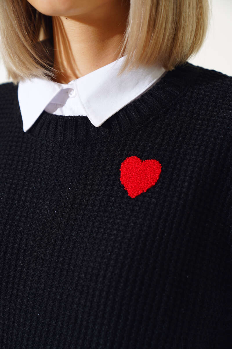 Duble Kol Zikzak Desen Triko Kazak Siyah
