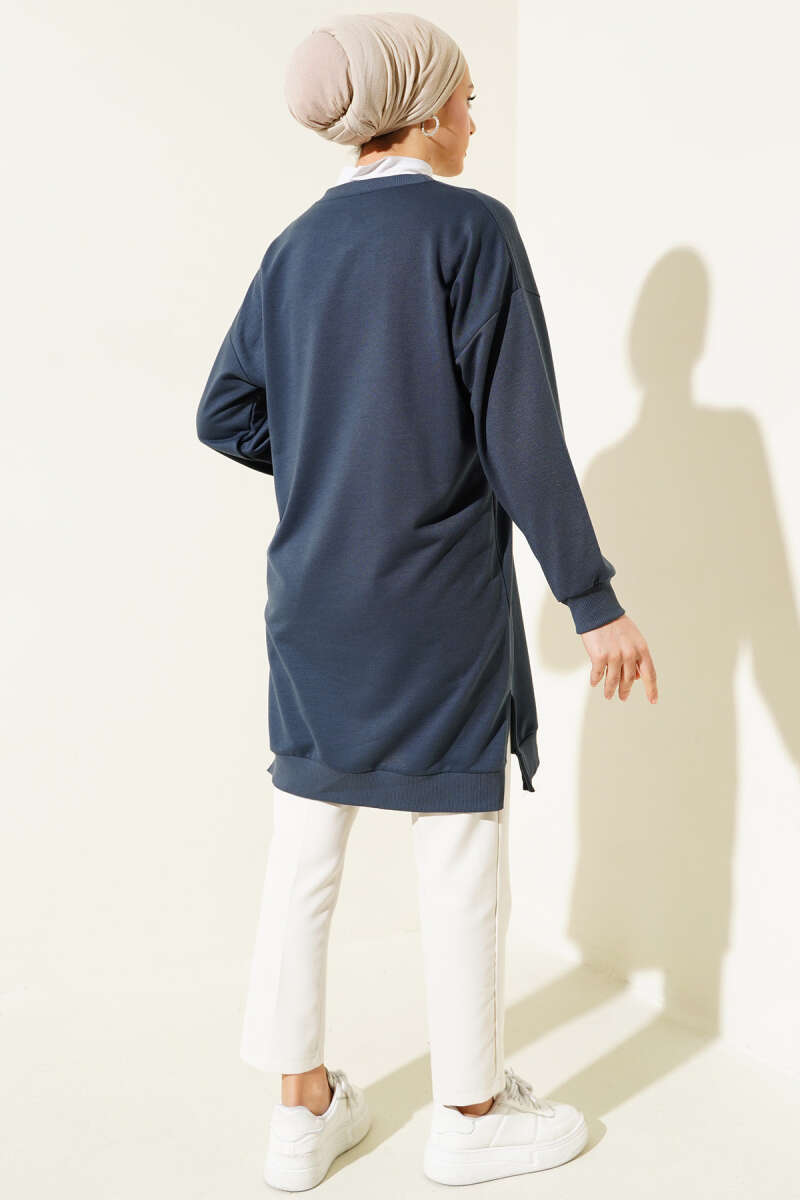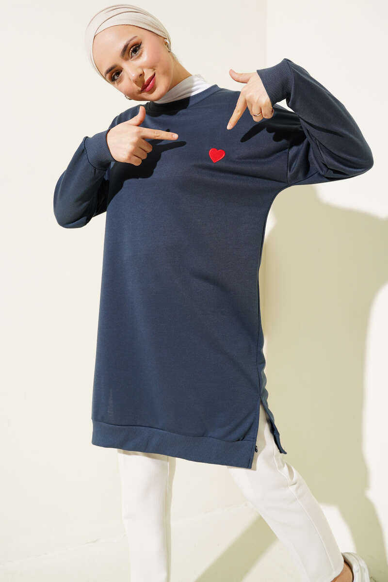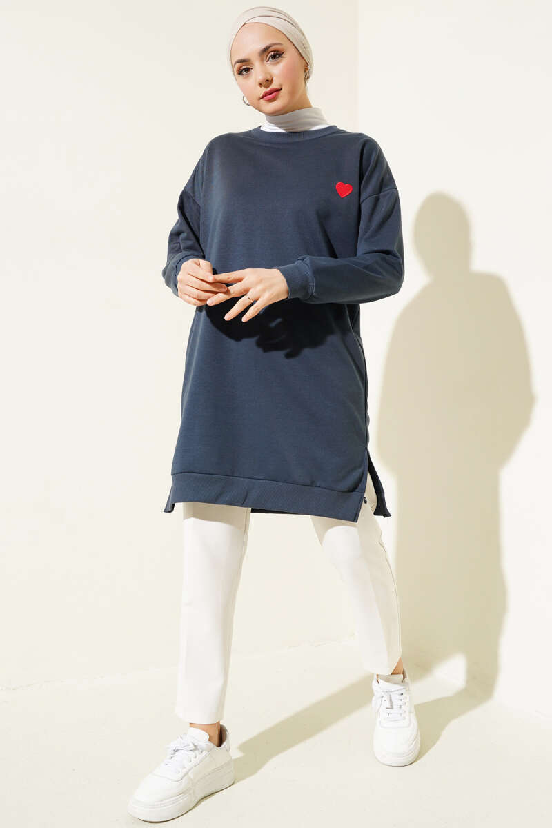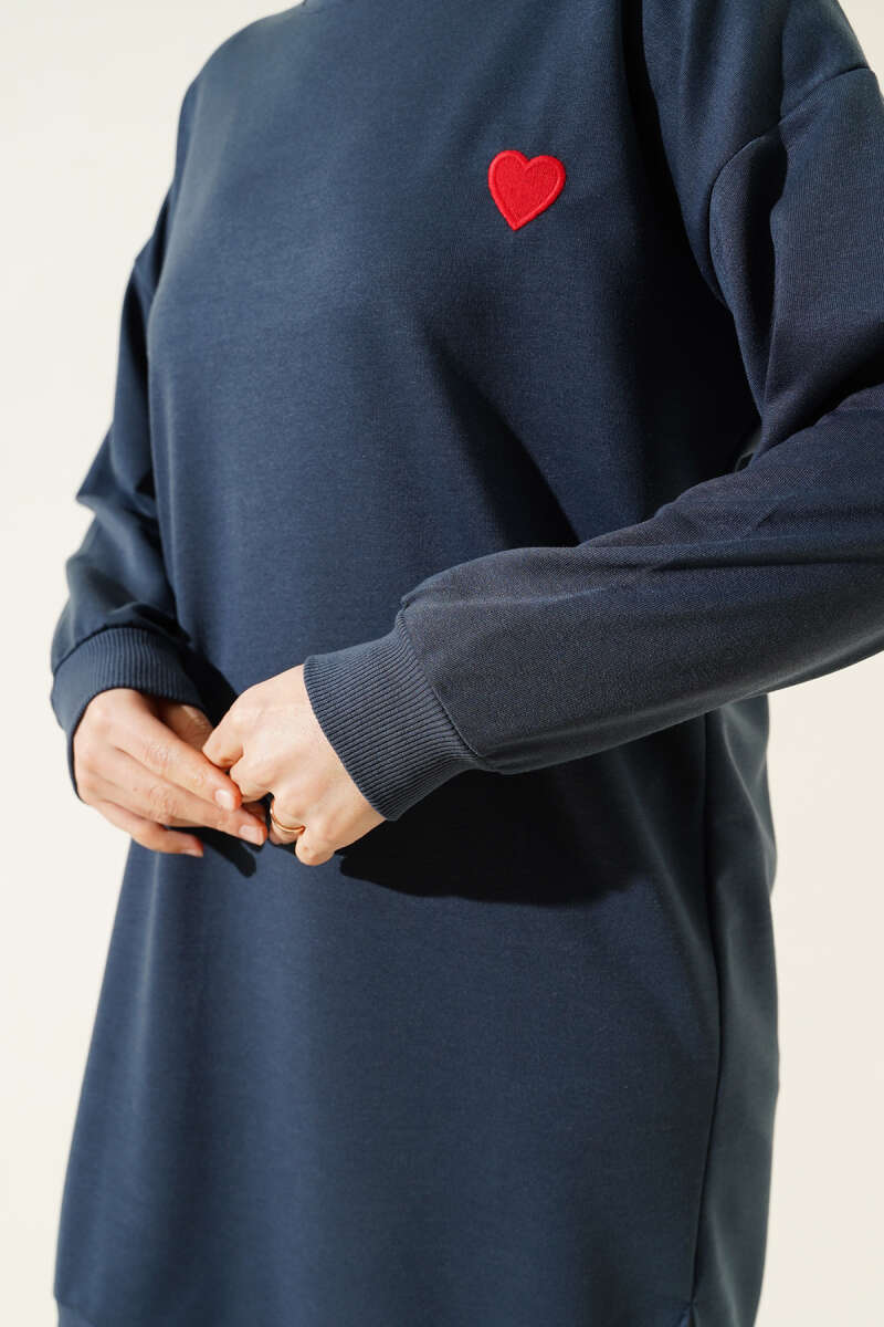 Kalp Nakışlı Uzun Tunik Füme