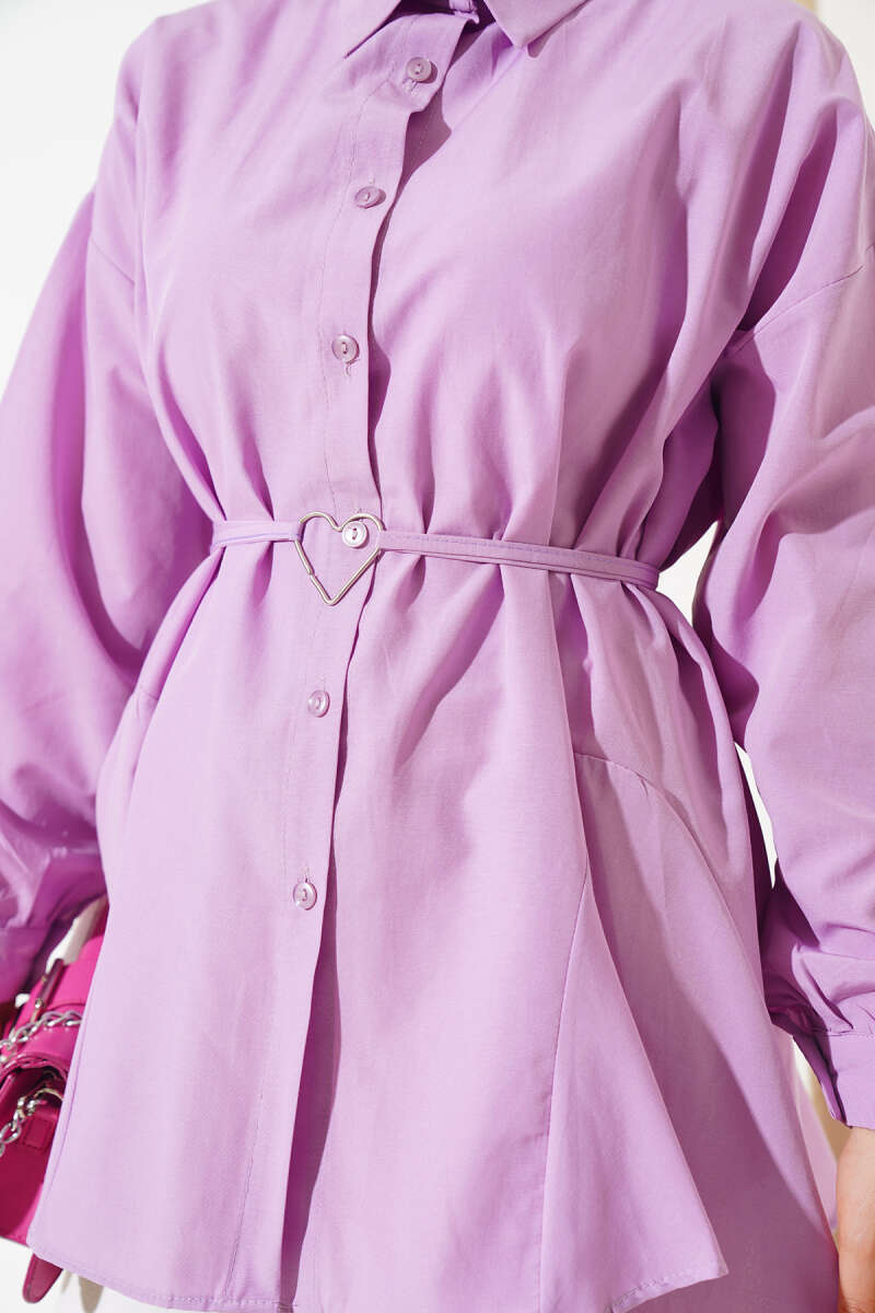 Kalp Tokalı Gömlek Lila