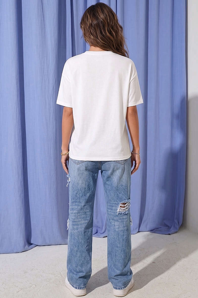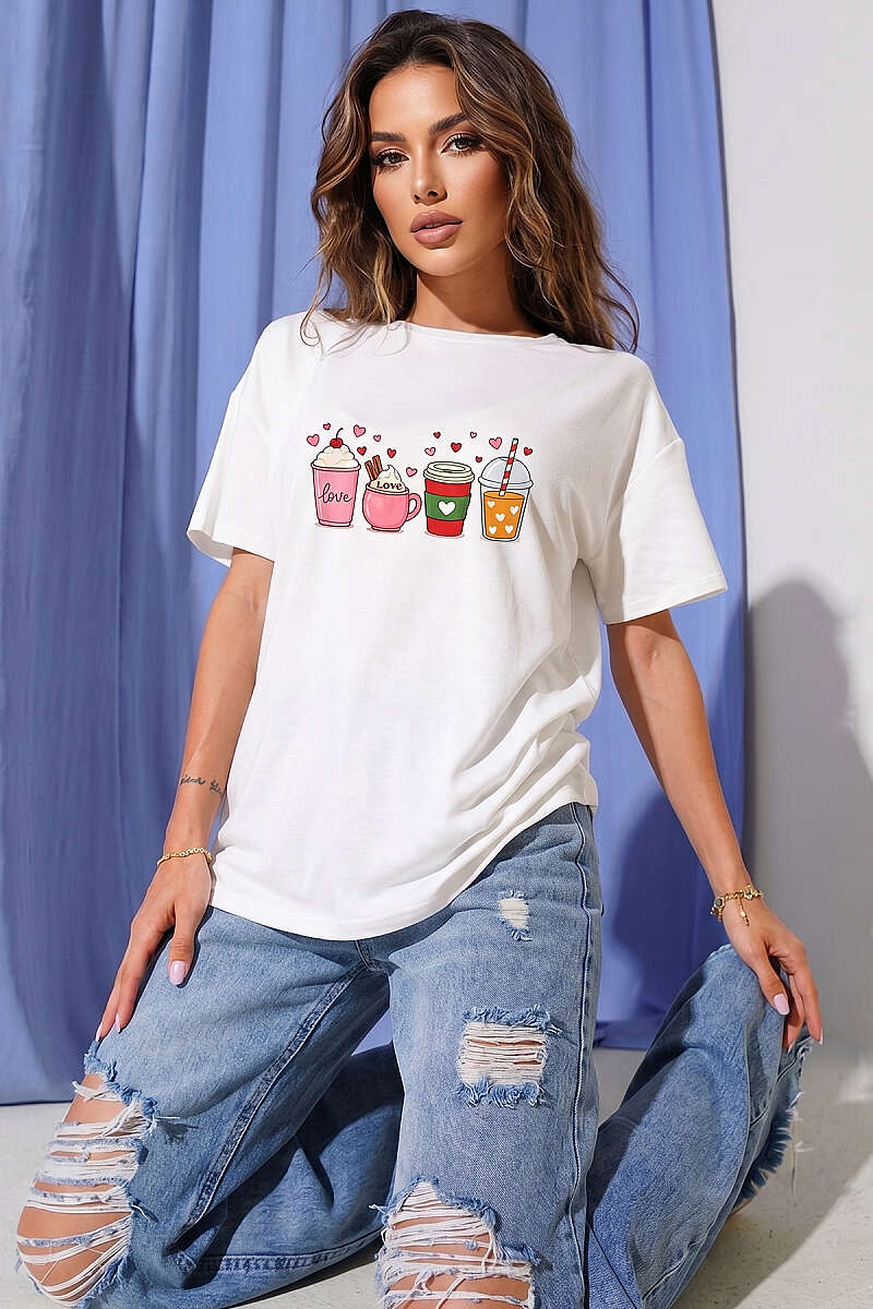 Kalpli Bardak Baskılı T-shirt Beyaz