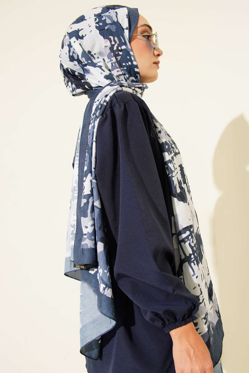 Mini Boncuk Detaylı Eşarp Lacivert